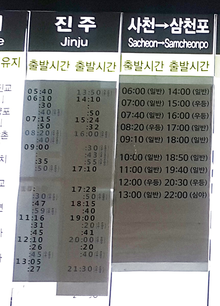 부산 사상 출발 진주, 사천, 삼천포 방면.