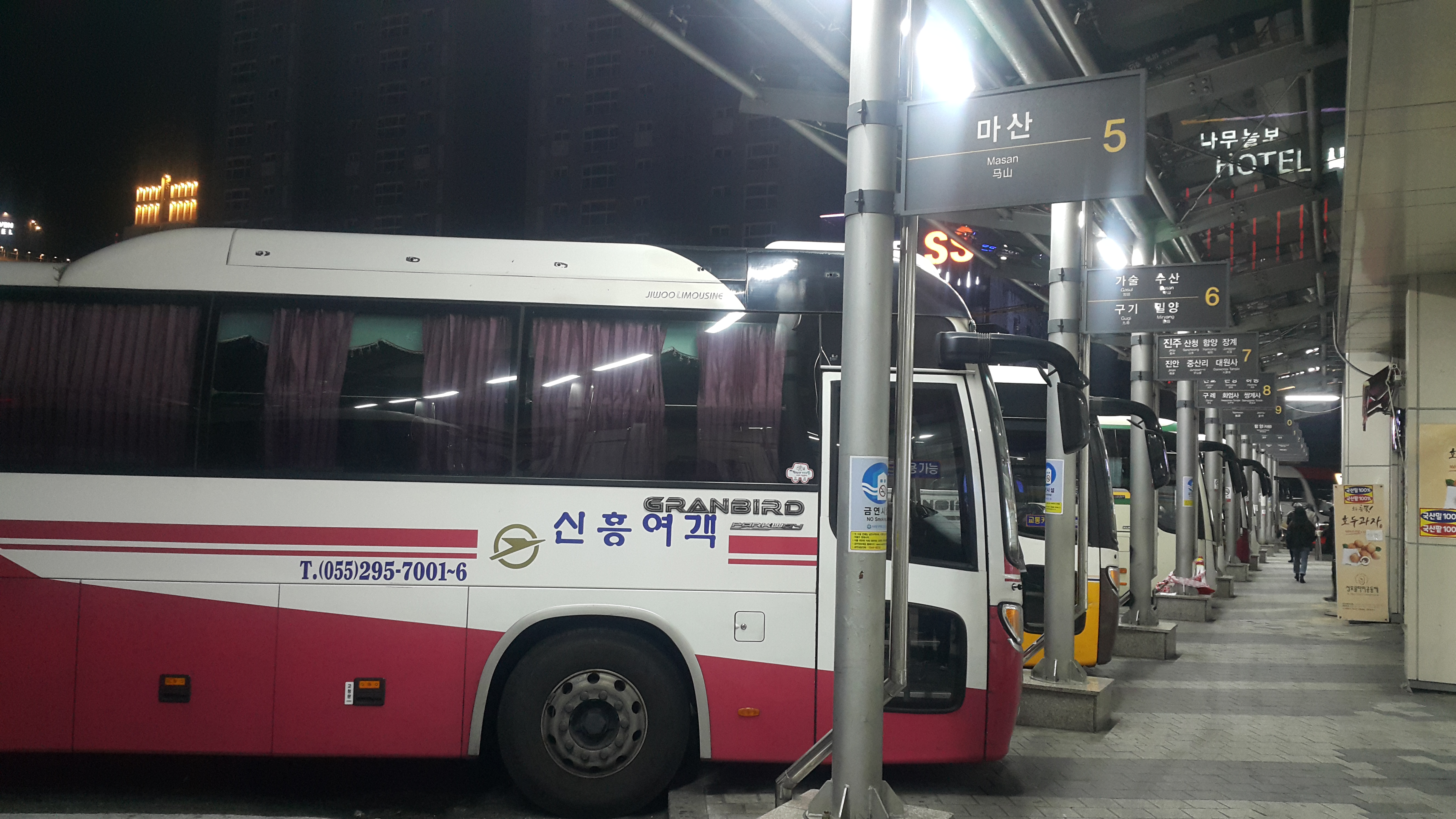 부산 사상 출발 거창, 의령, 합천, 경주, 포항 방면.