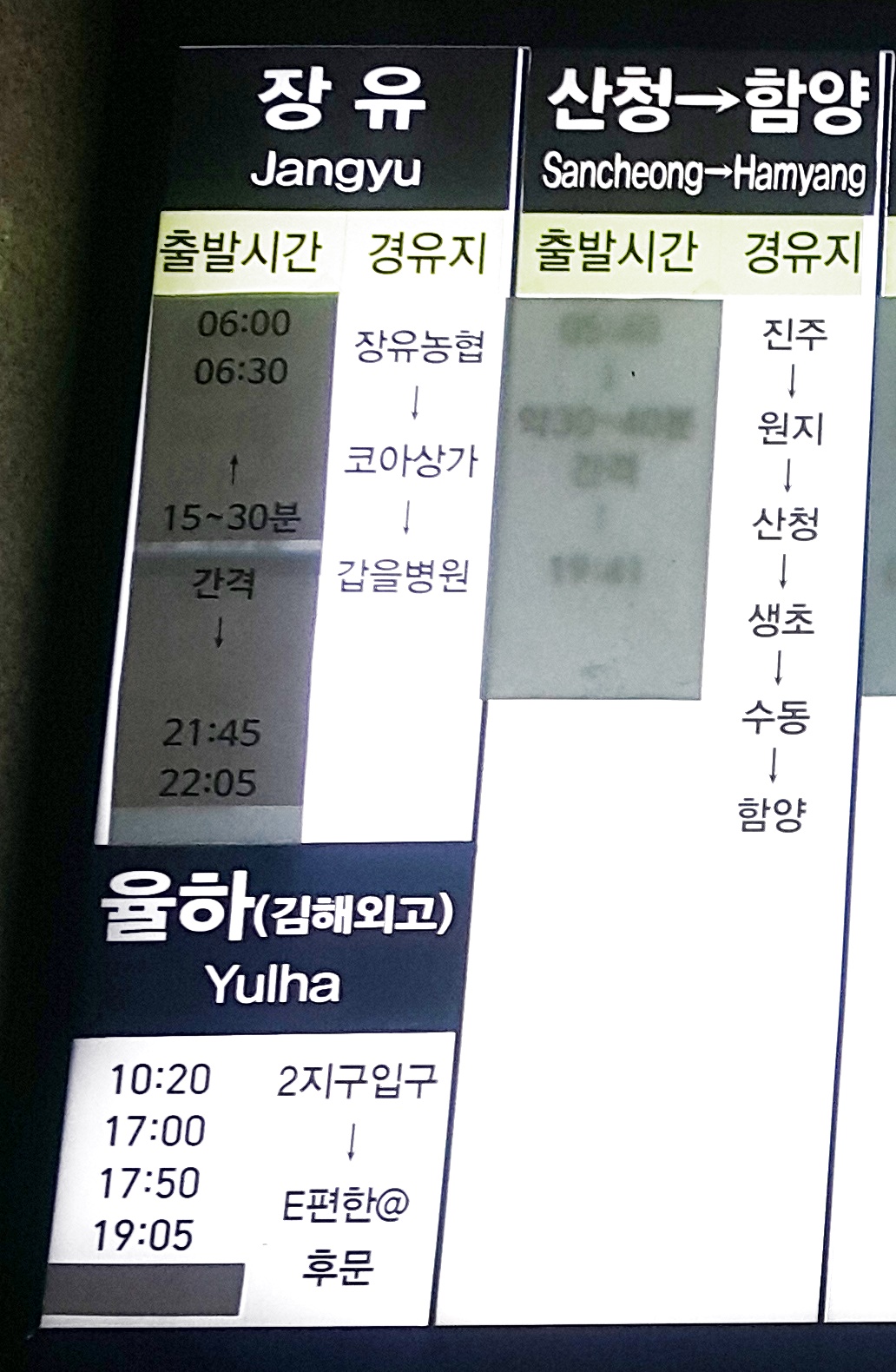 부산 사상 출발 장유, 율하, 김해외고, 산청, 함양 방면.