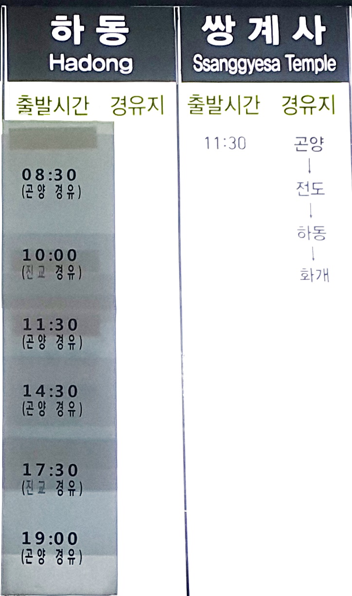 부산 사상 출발 하동, 쌍계사 방면,