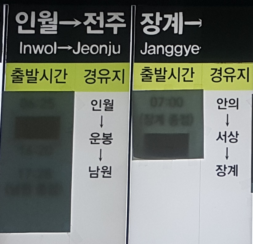 부산 사상 출발 인월, 전주, 장계 방면은 모두 운행 중단되었음.
