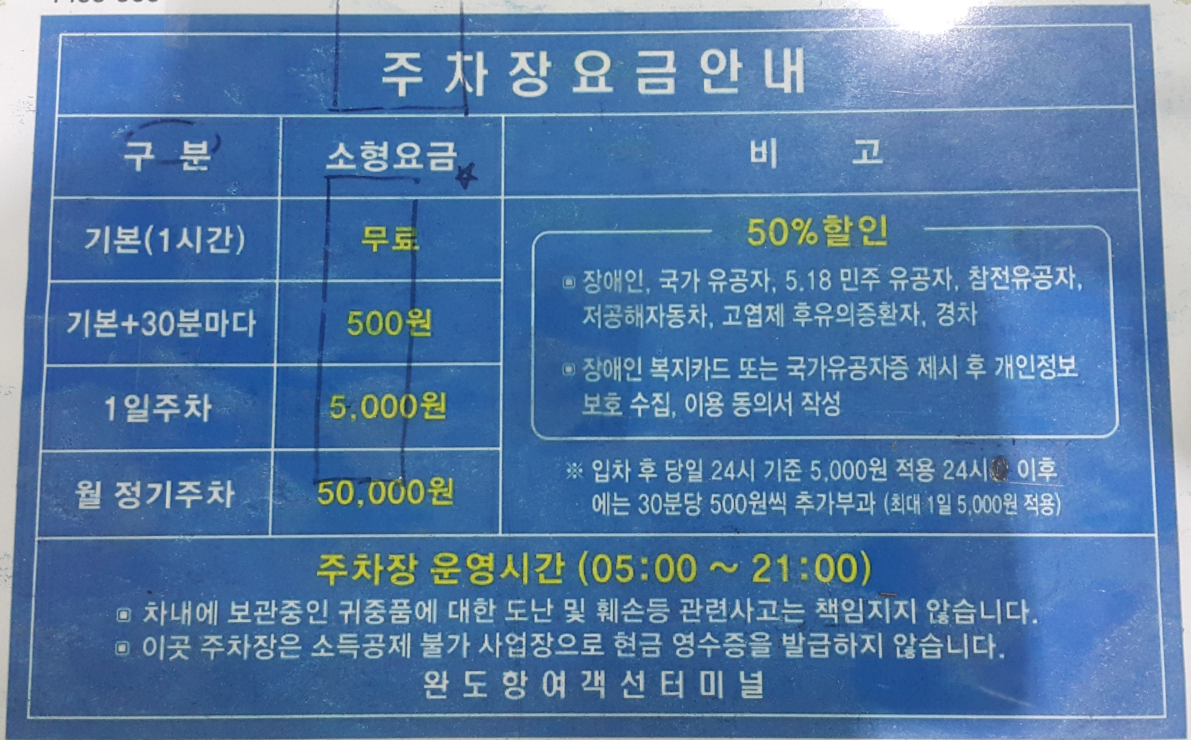 완도여객선터미널 주차장 요금표