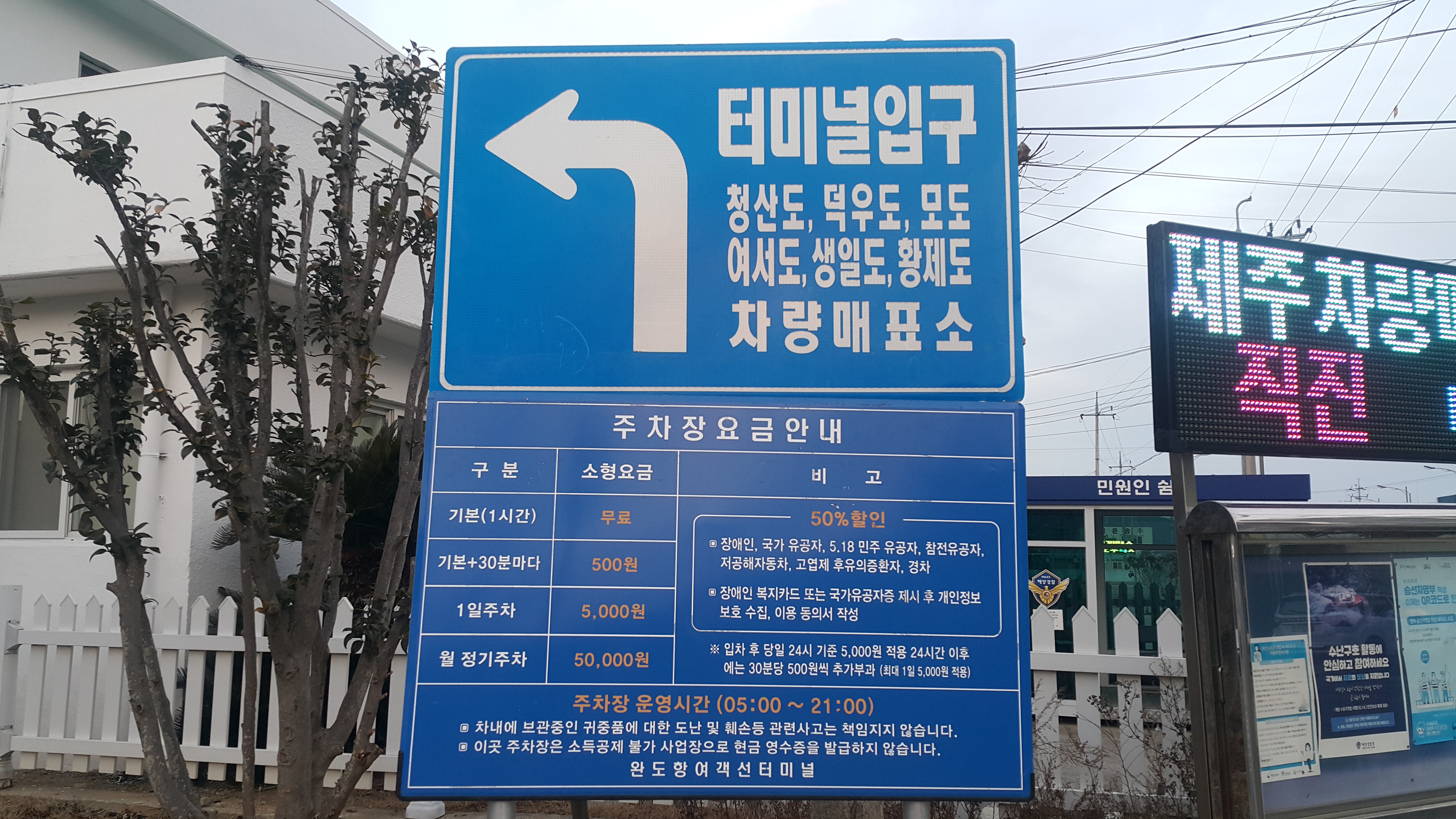 완도여객선터미널 주차장 요금표
