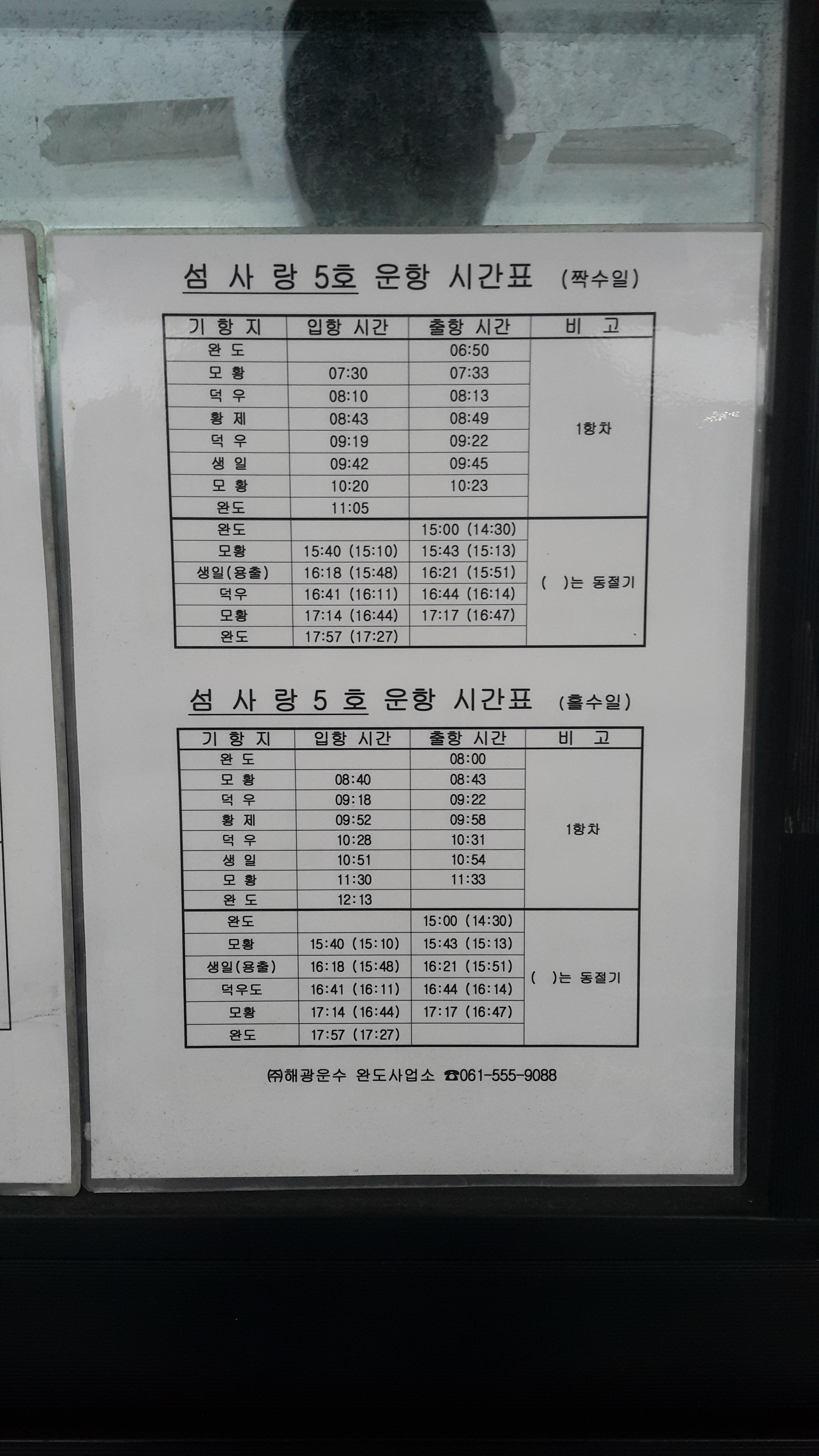 완도항 여객선 터미널 시간표