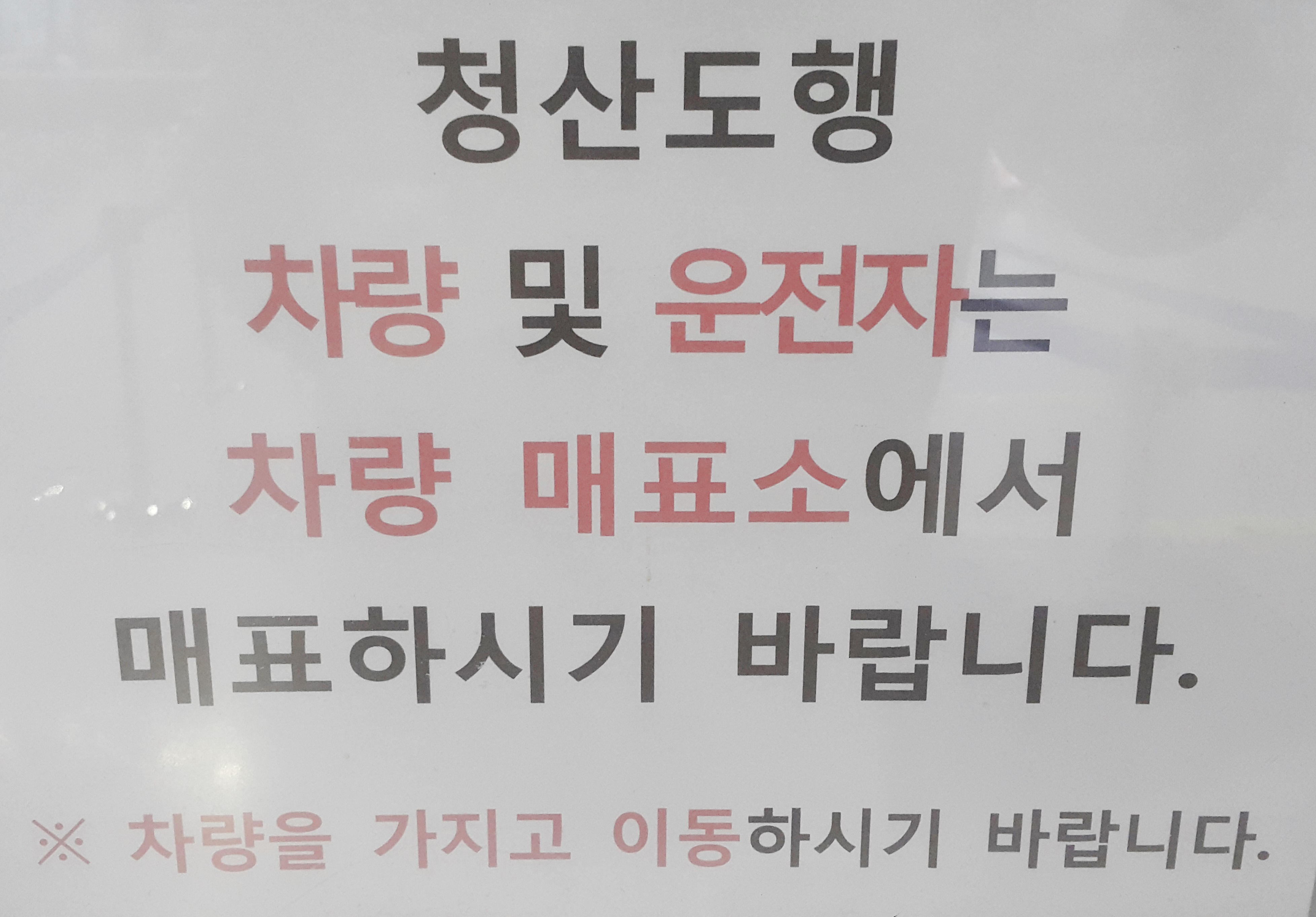 청산도행 차량 및 운전자는 차량 매표소에서 매표하시기 바랍니다.