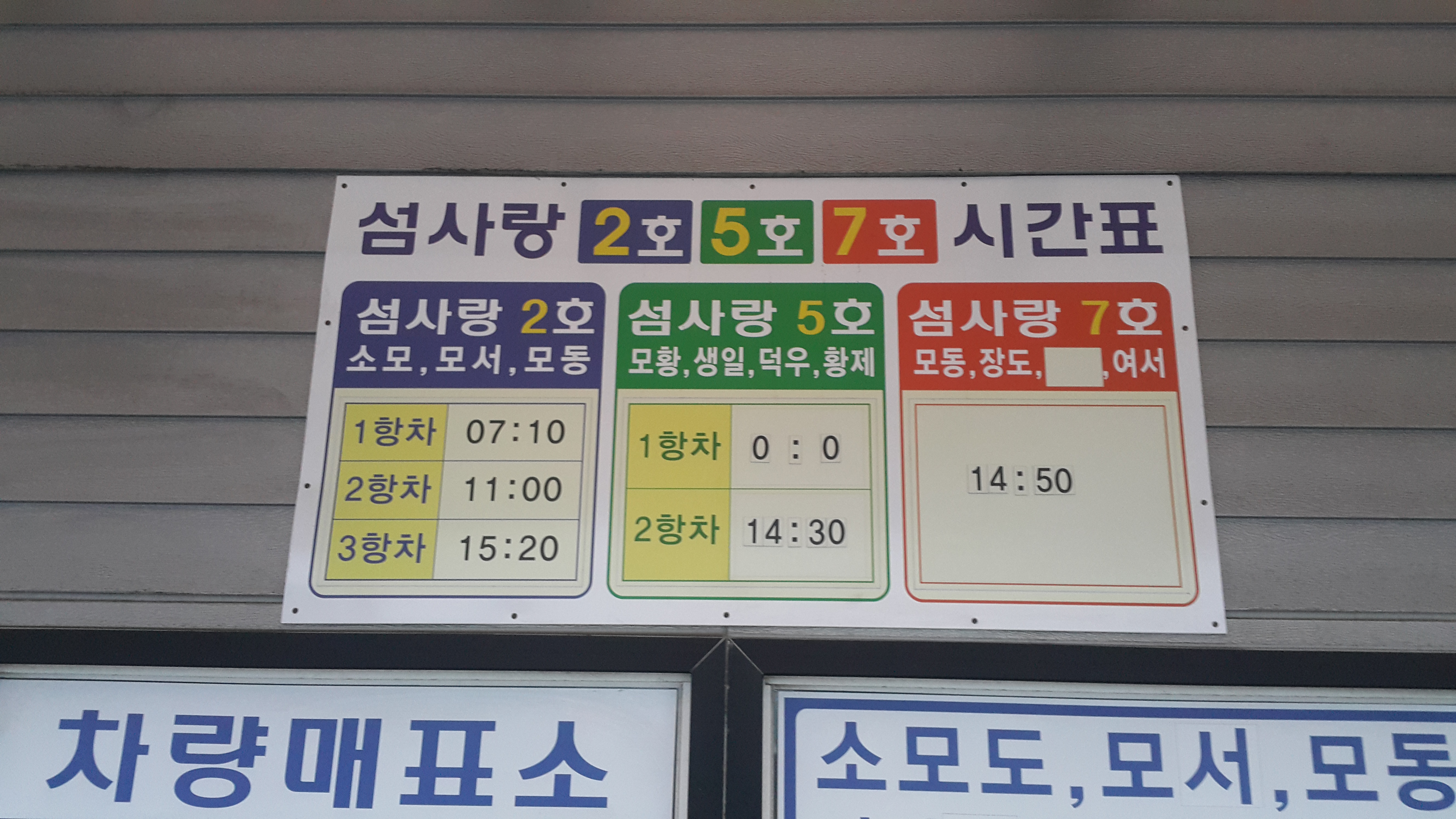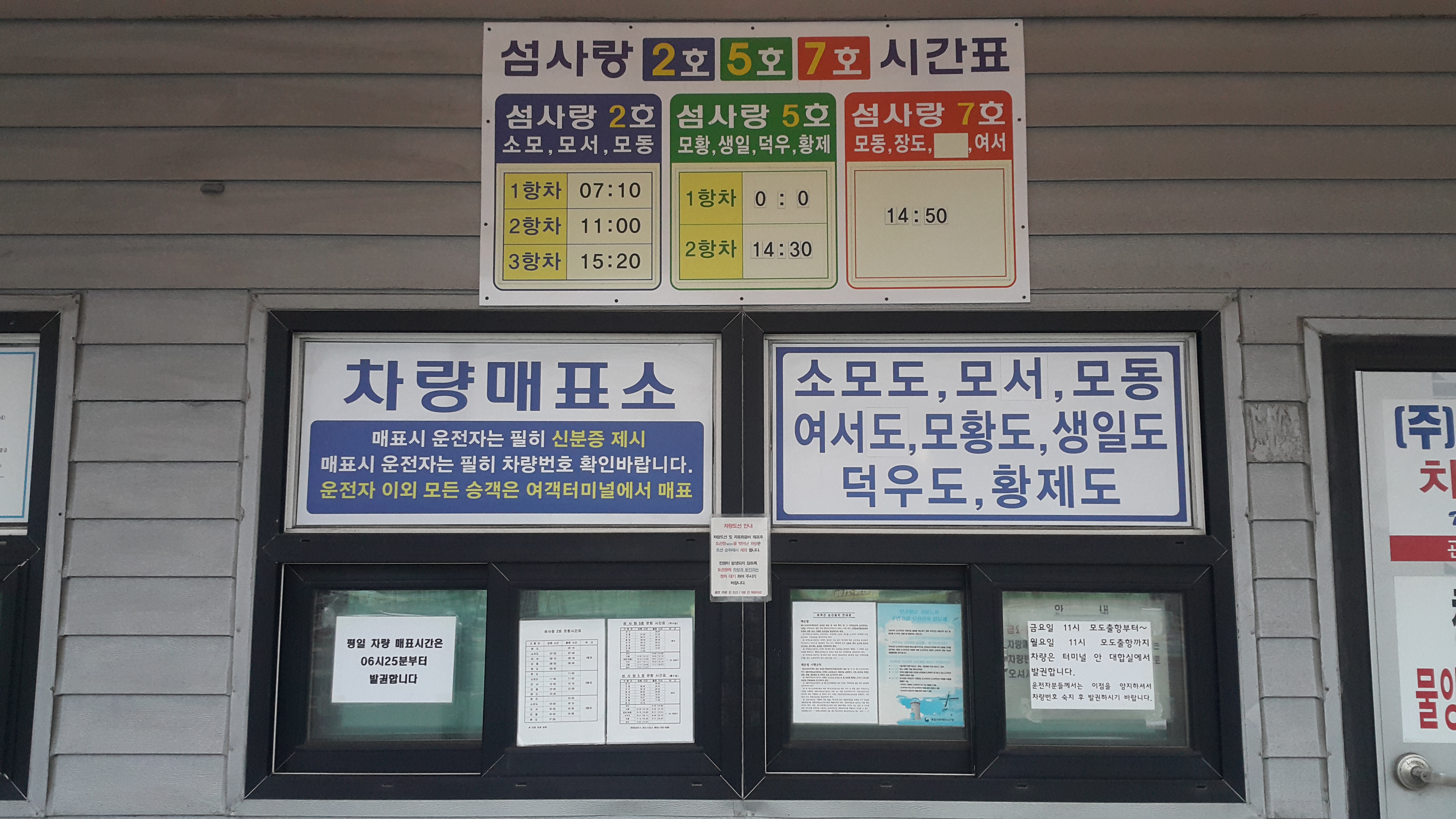 월요일 11시 모도 출항까지 차량은 터미널 안 대합실에서 발권합니다.