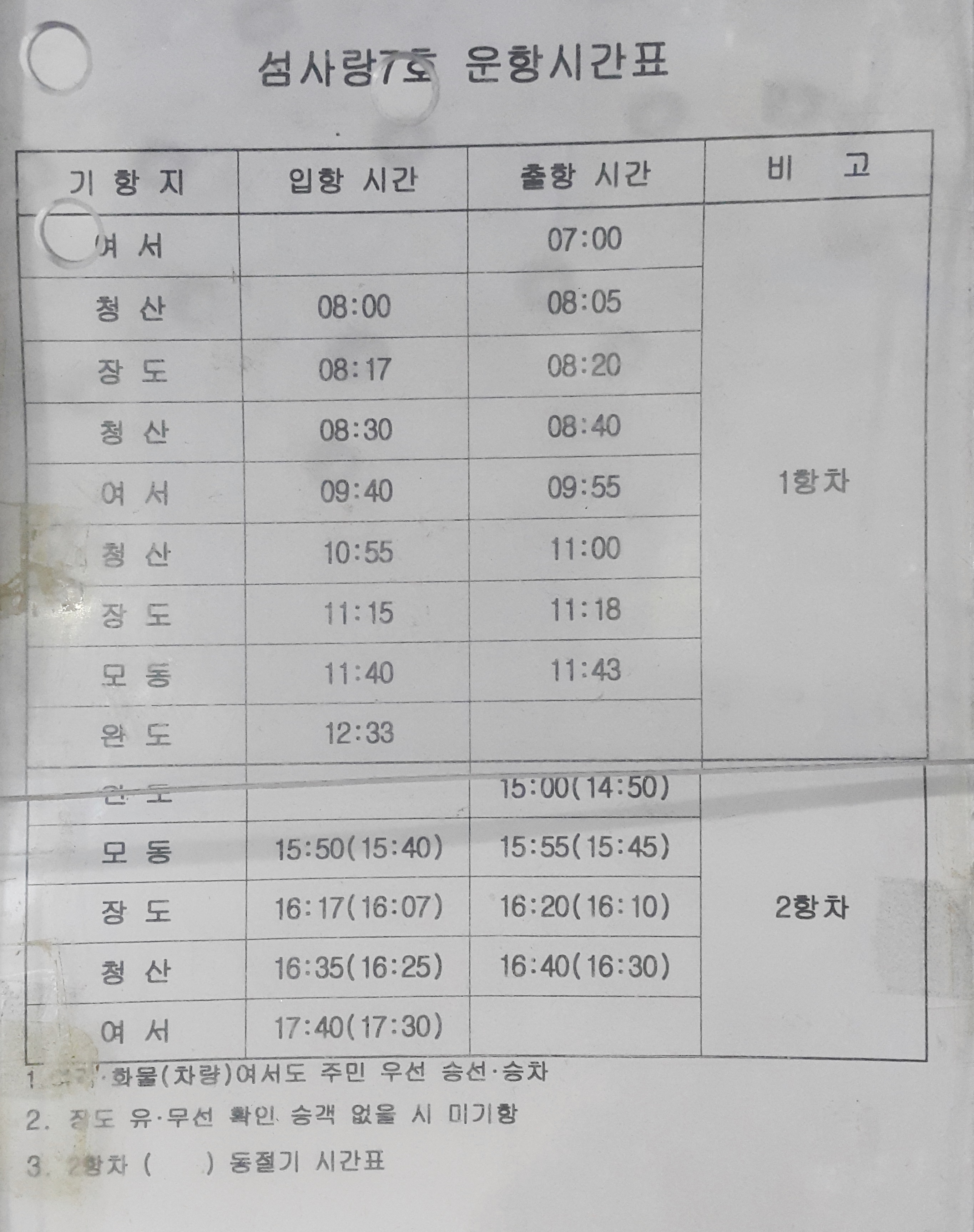 섬사랑 7호 운항시간표