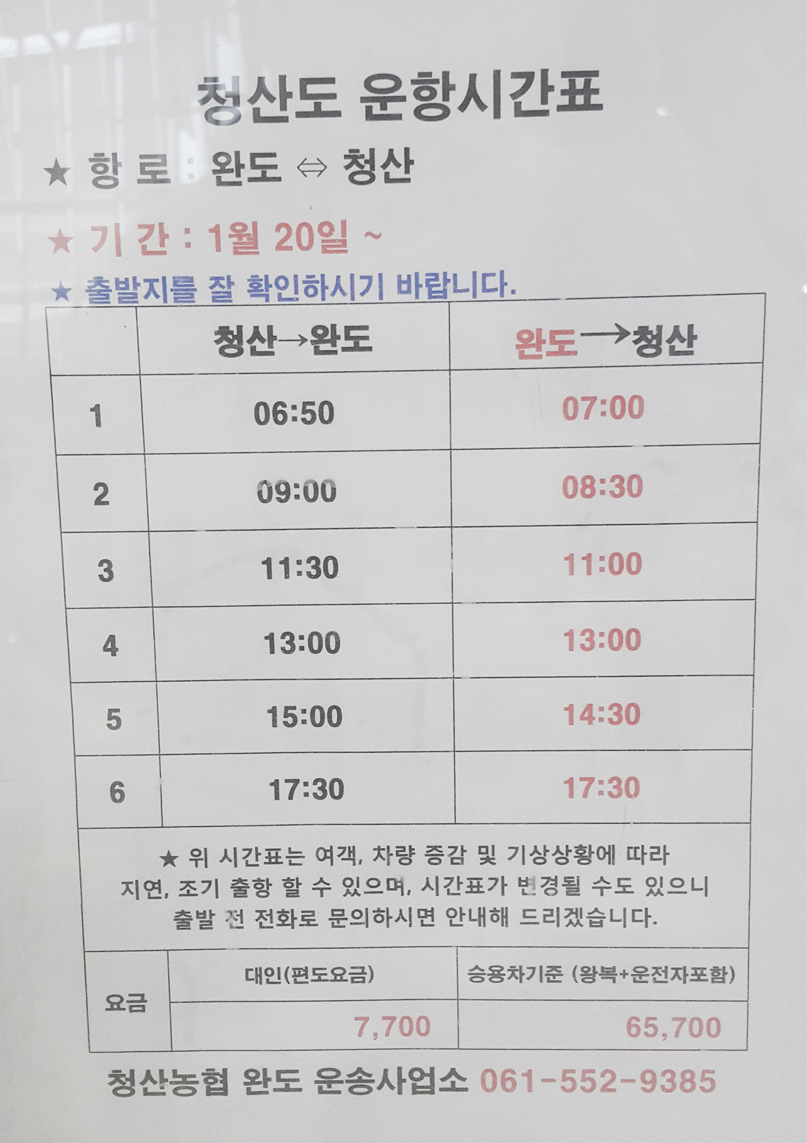 청산도 선박운항시간표