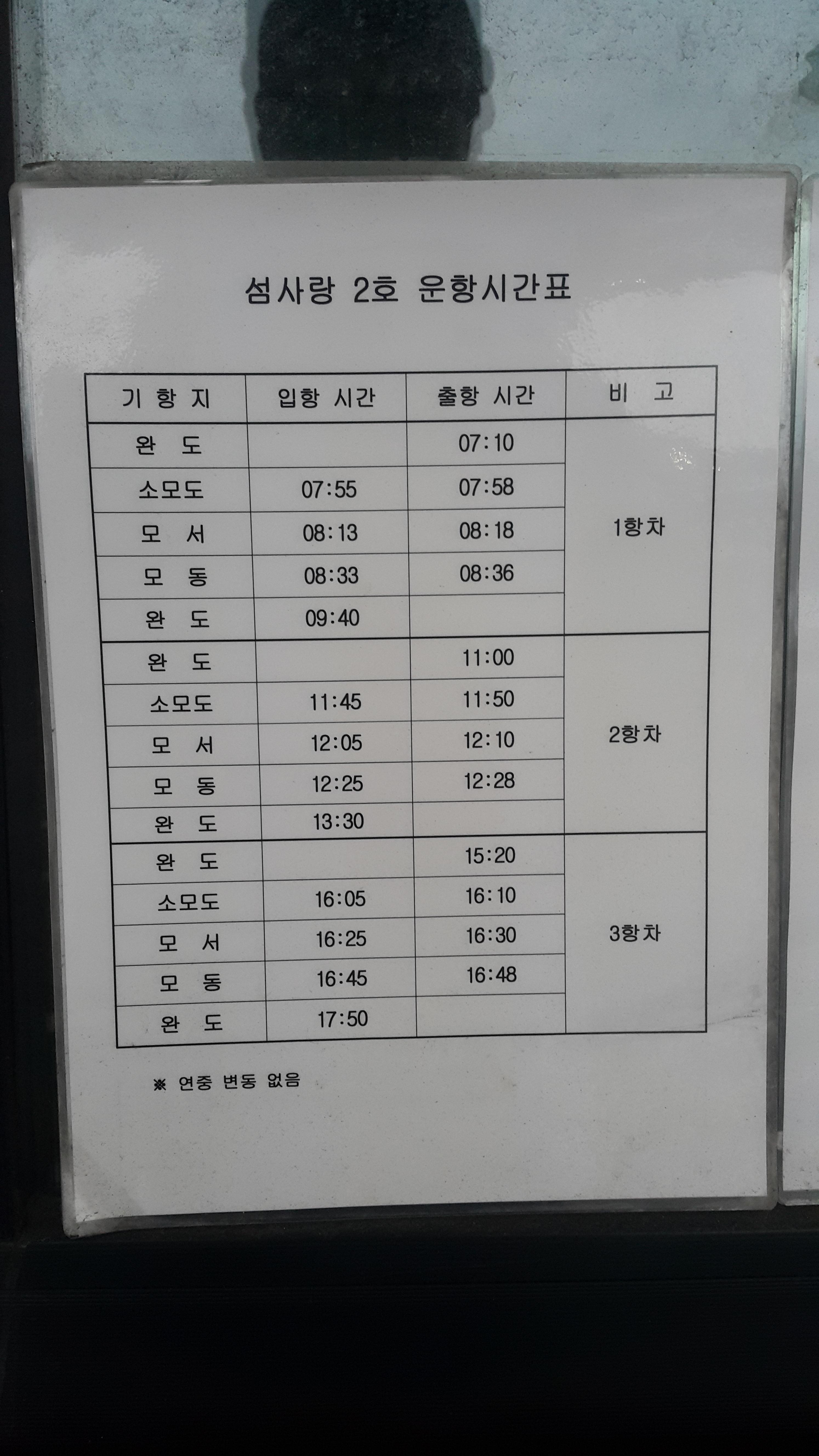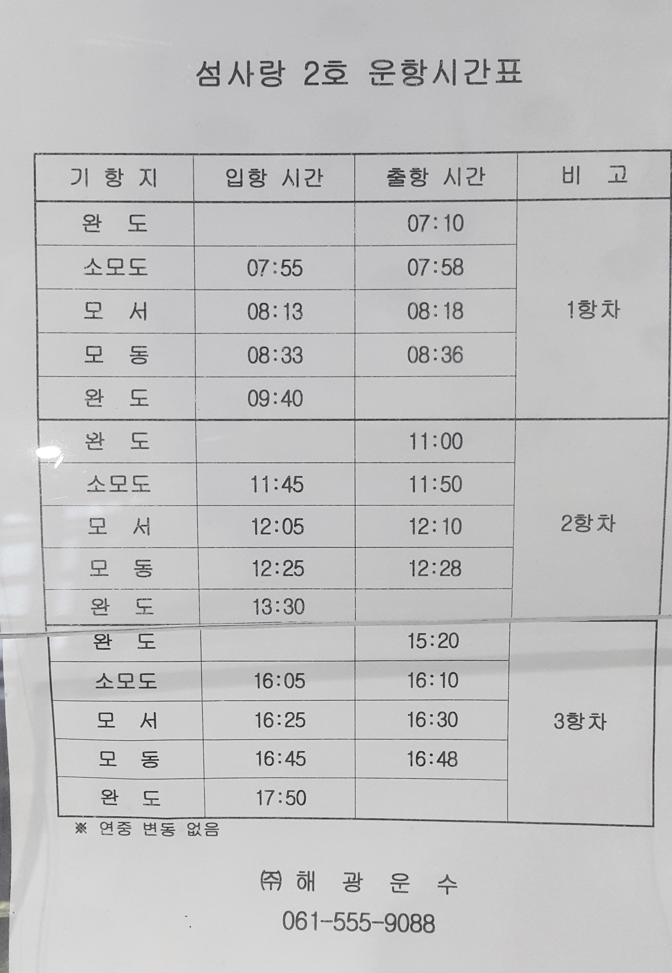 섬사랑 2호 운항시간표 1항차 ,2항차, 3항차.