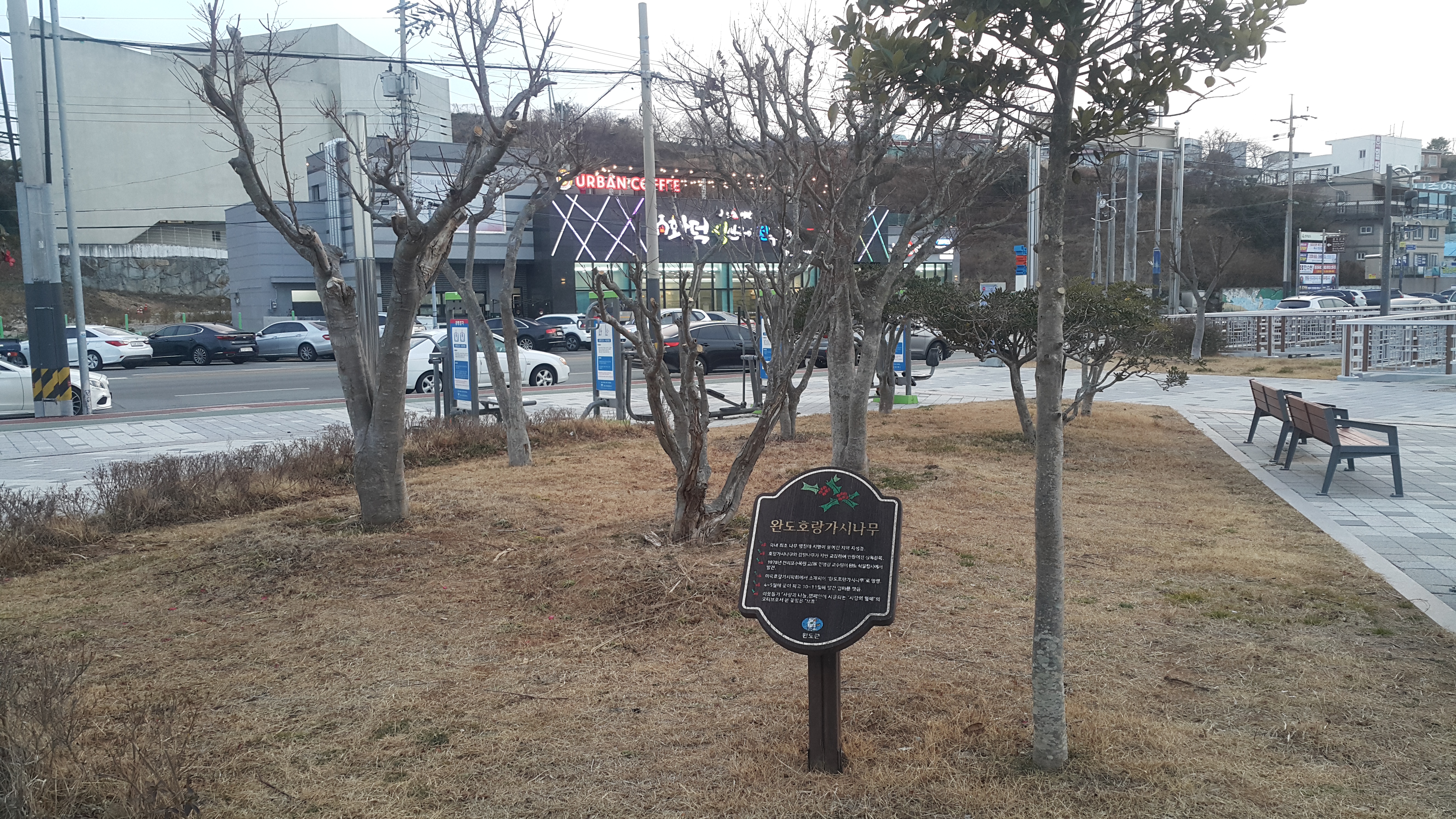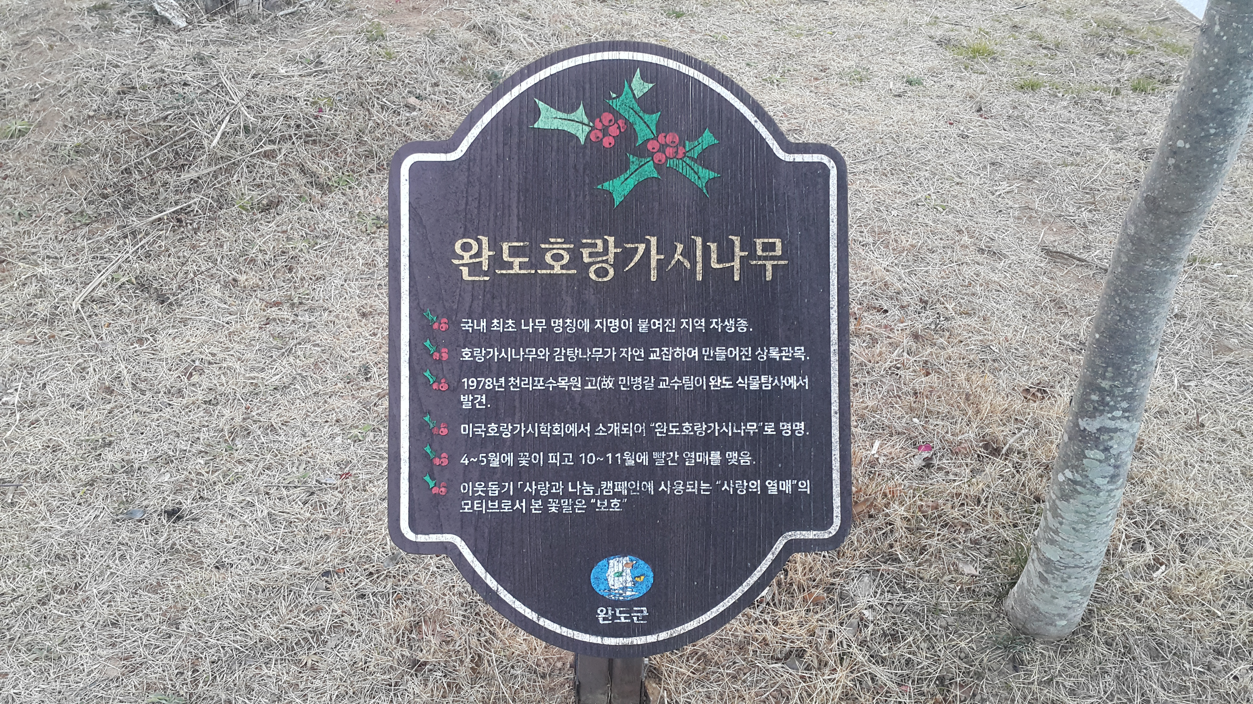완도 호랑가시나무 푯말이 있습니다.