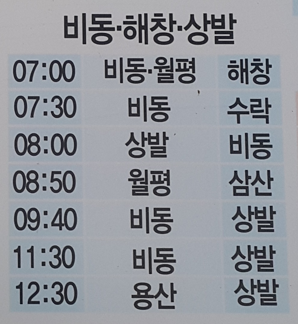 장흥시외버스터미널 출발 비동, 해창, 상발 방면
