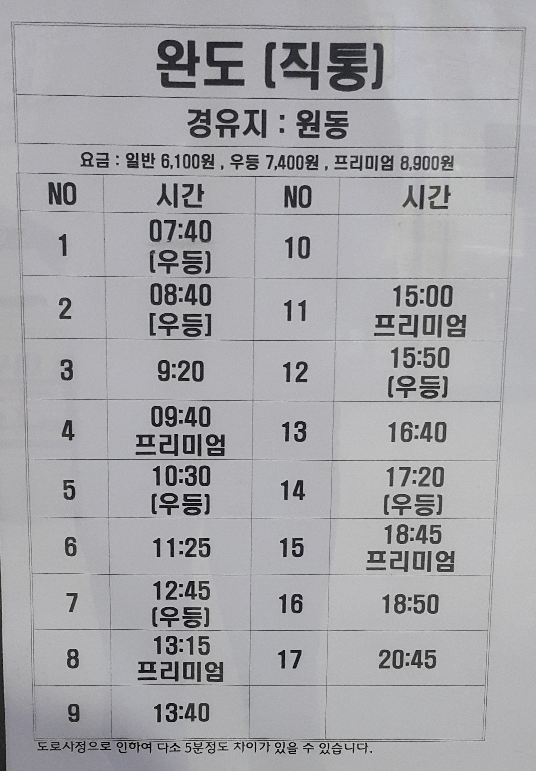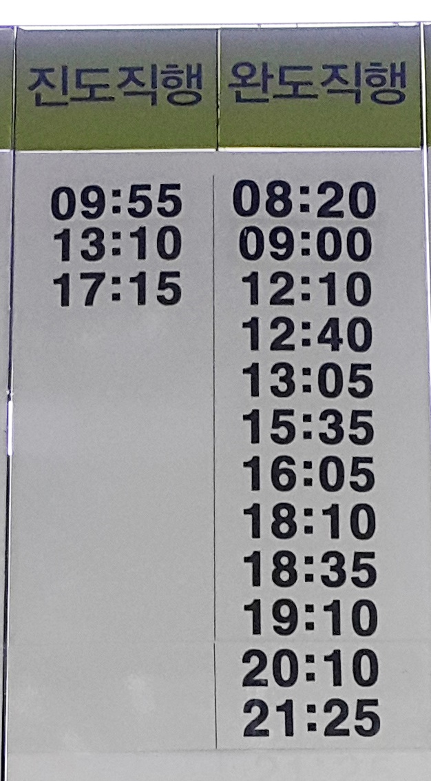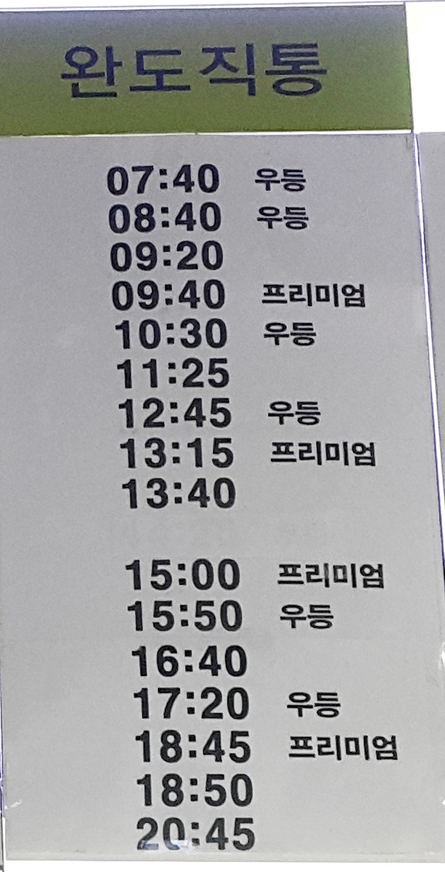 해남 출발 완도 직통.
