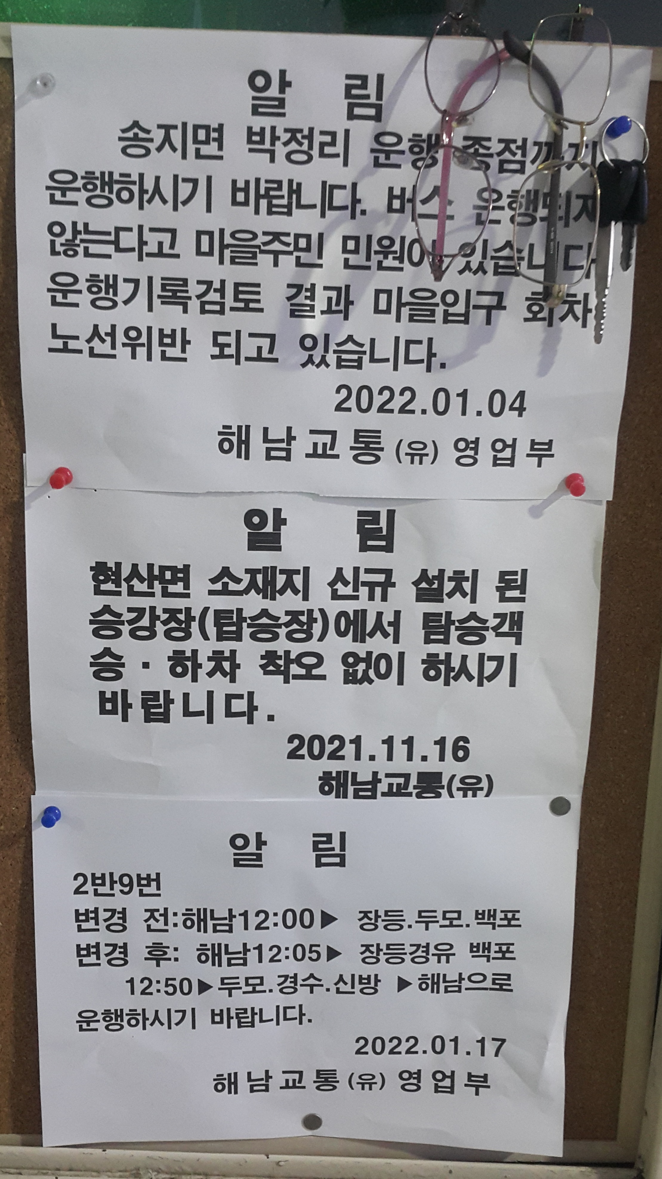 해남 출발 땅끝직행 산정, 송호리, 땅끝 방면.