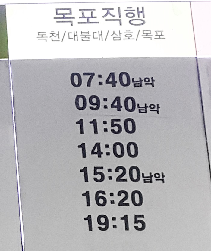 해남 출발 목포 직행, 독천, 대불대, 삼호, 목포 방면.