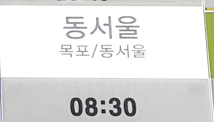 해남 출발 동서울, 목포 방면.