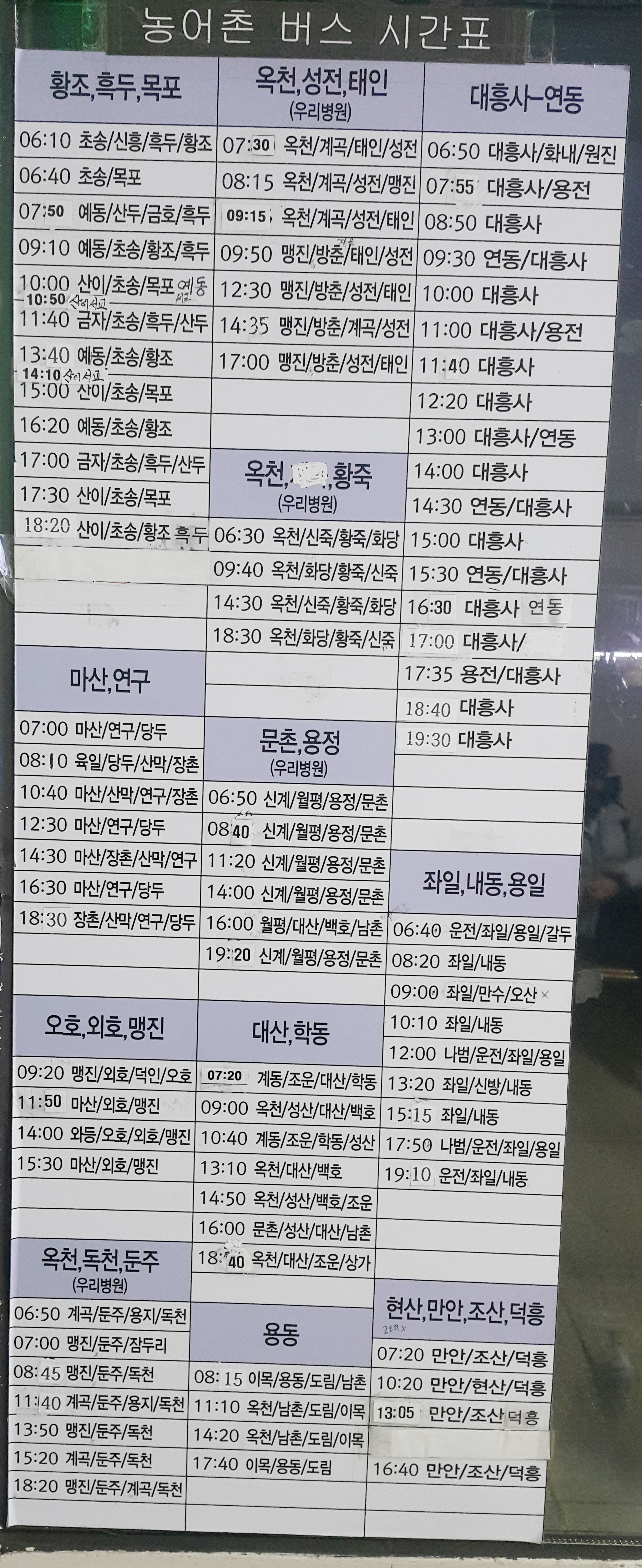 농어촌 버스 시간표