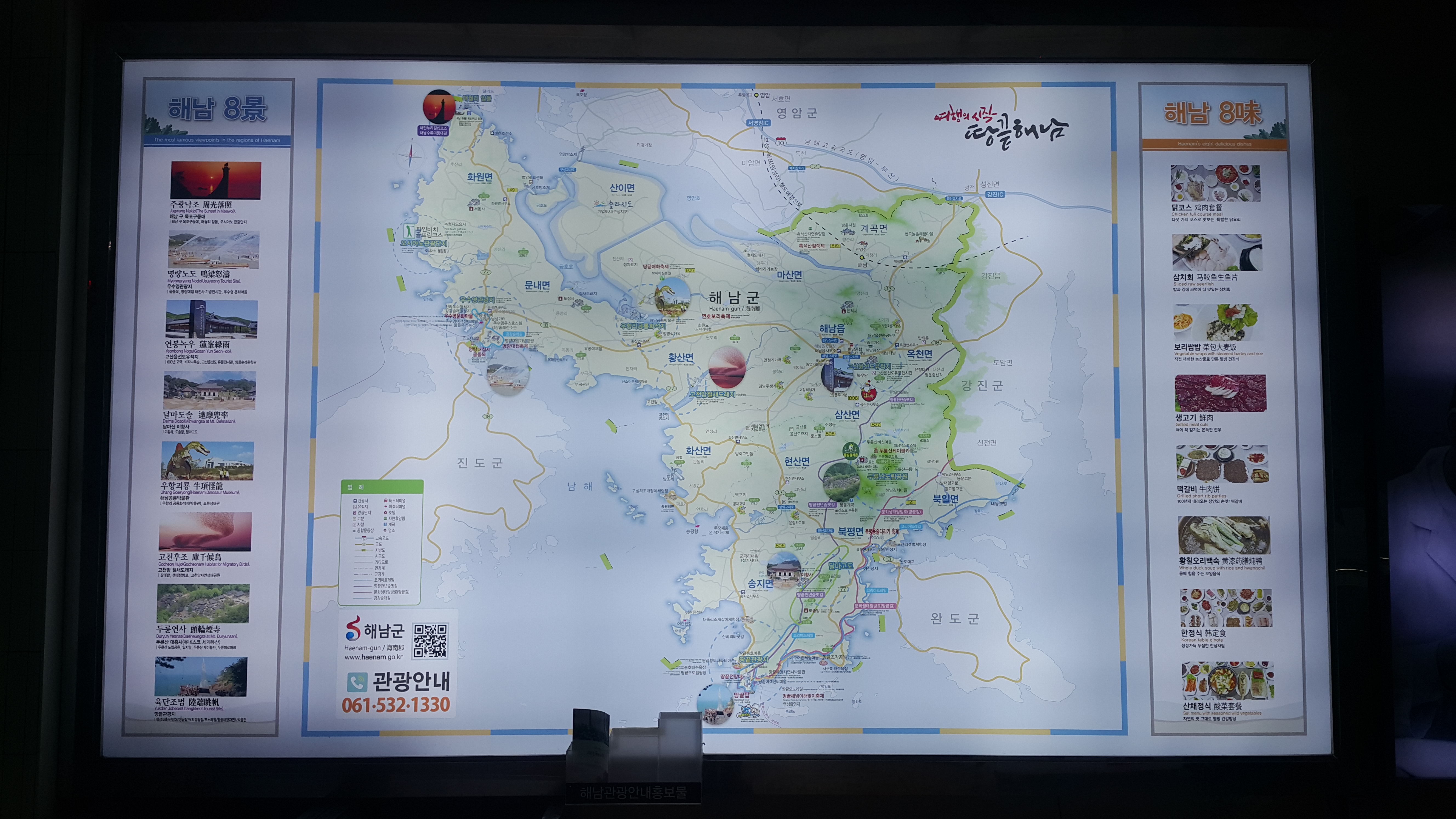 해남 출발 완도 직총 경유지 원동.