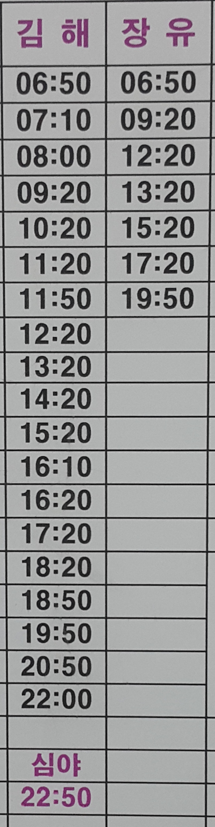 동래시외버스정류소 시간표