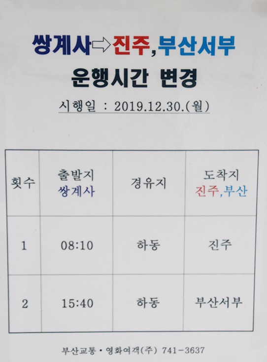 하동 쌍계사 시외버스터미널 시간표 지리산국립공원 자생식물관찰원
