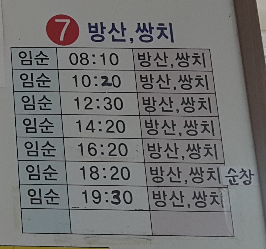 정읍 출발 방산, 쌍치 방면.