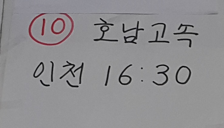 정읍 출발 인천 방면