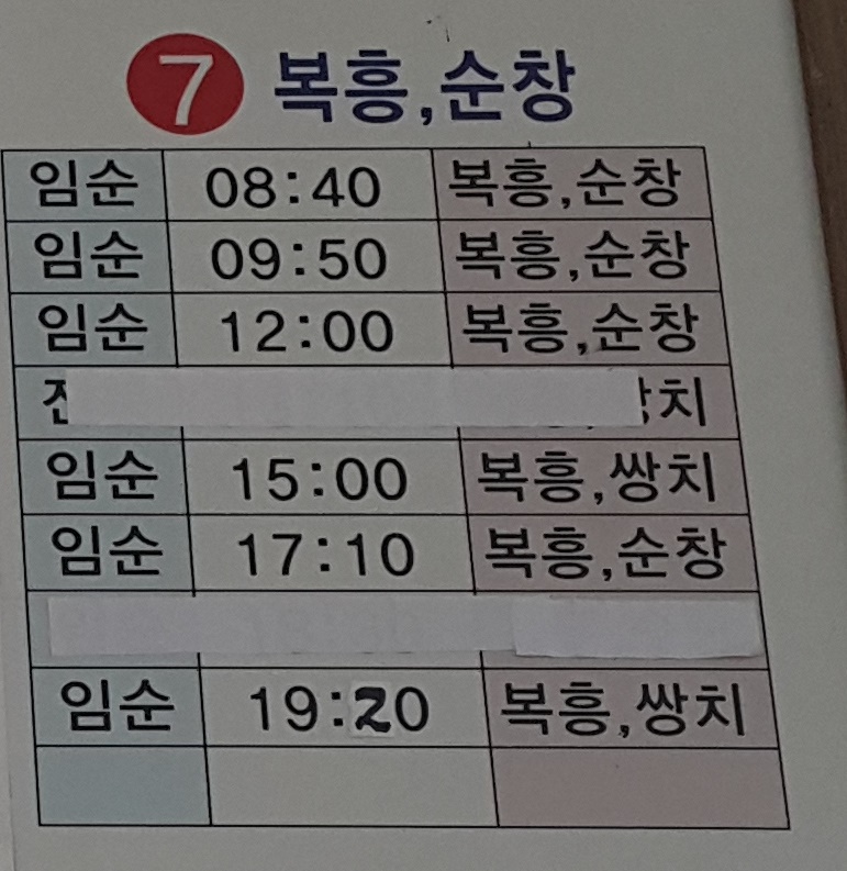 정읍 출발 복흥, 순창 방면.