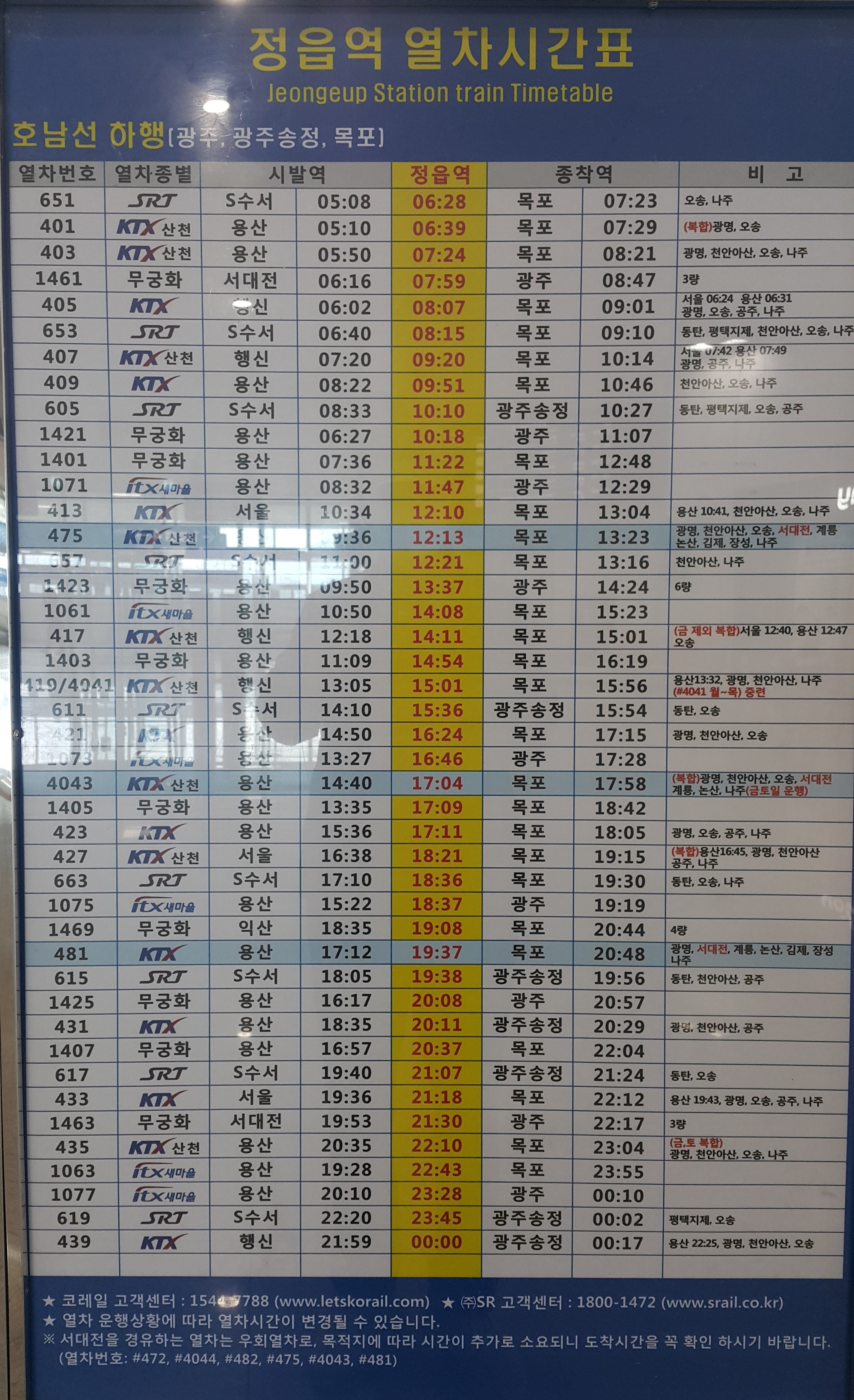 정읍역 열차시간표