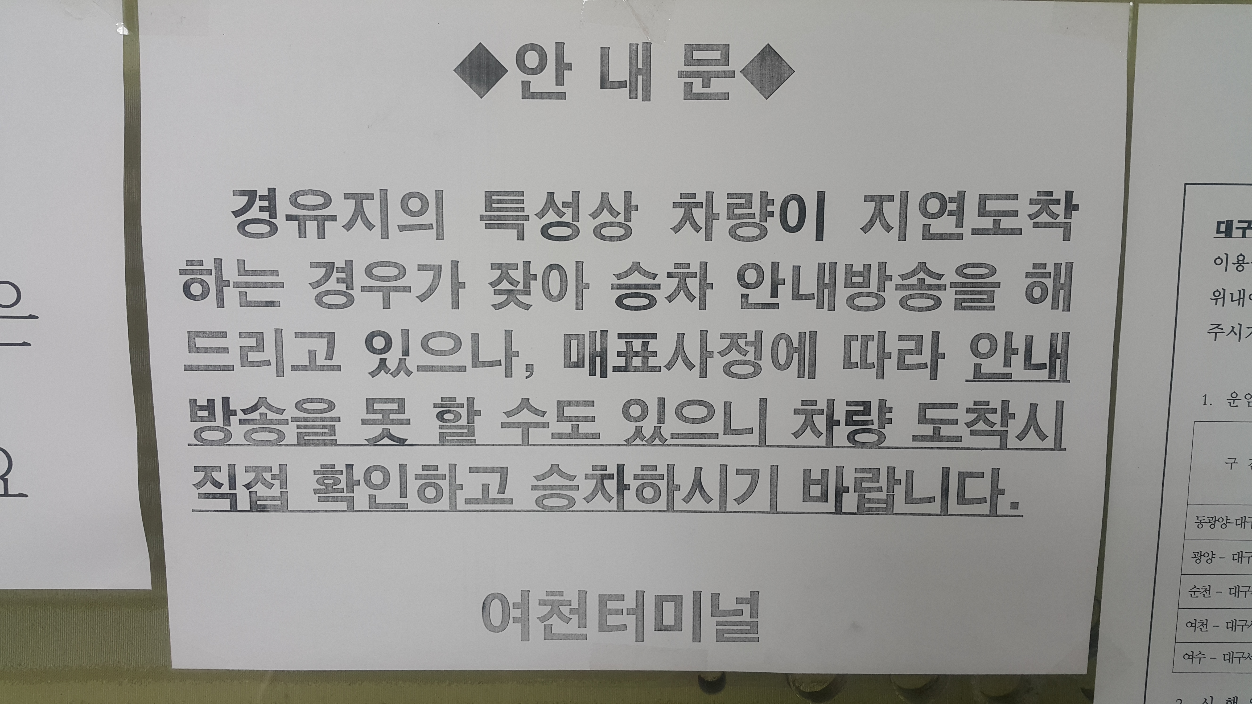 여천시외버스정류소 요금표