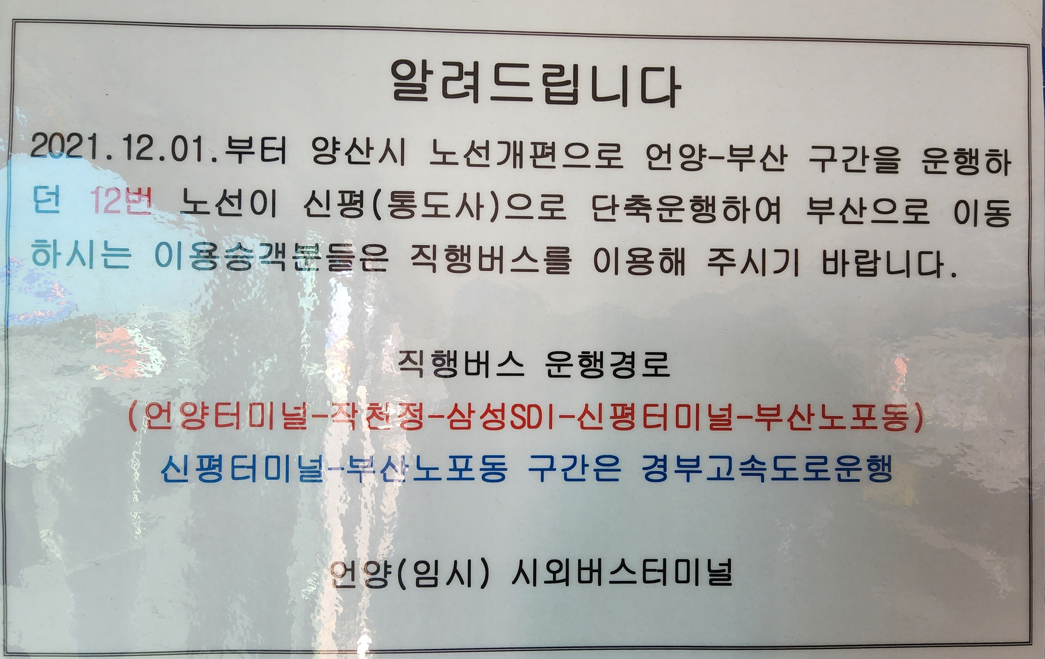 12번 버스 노선 개편 언양~신평 통도사 운행.