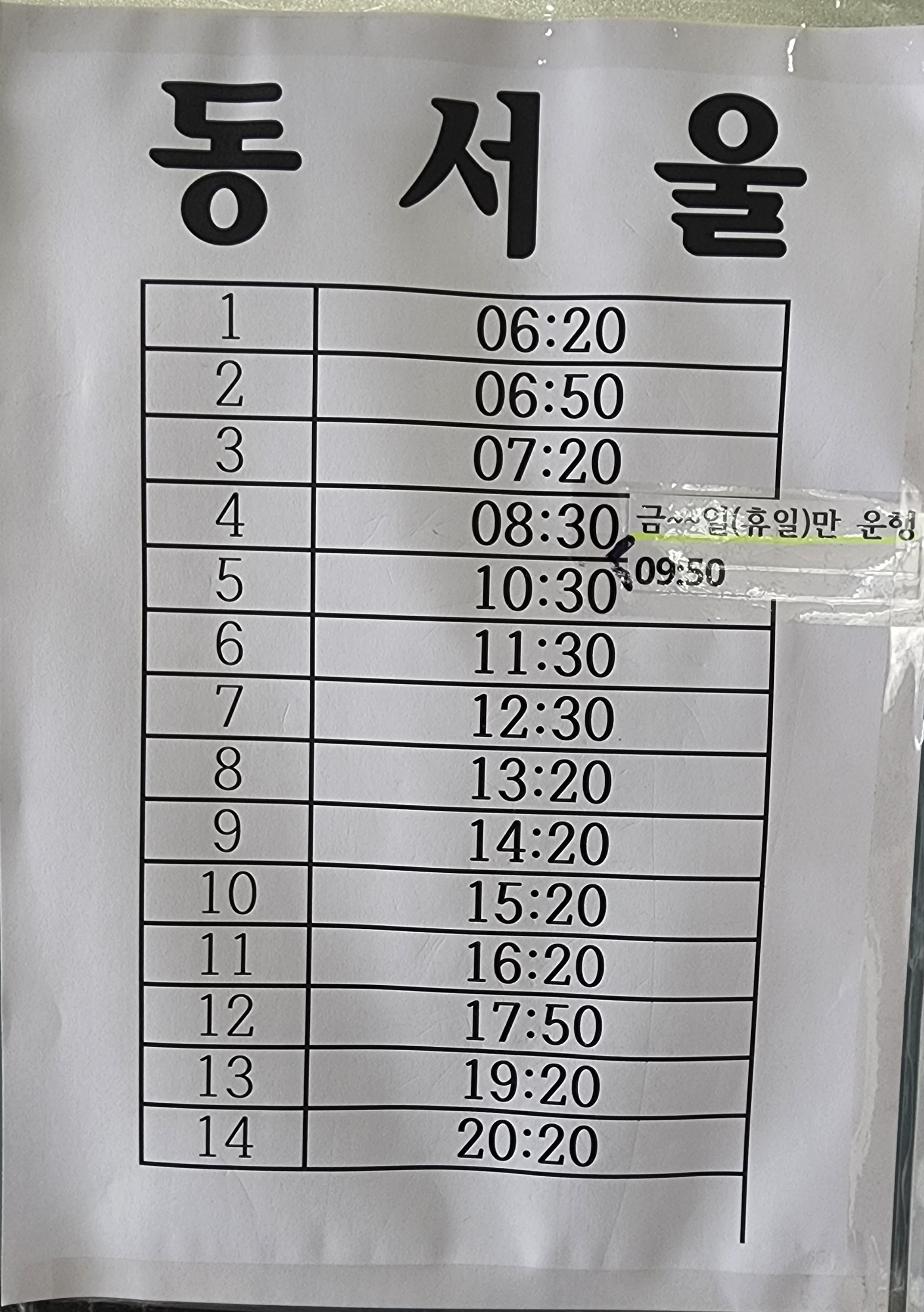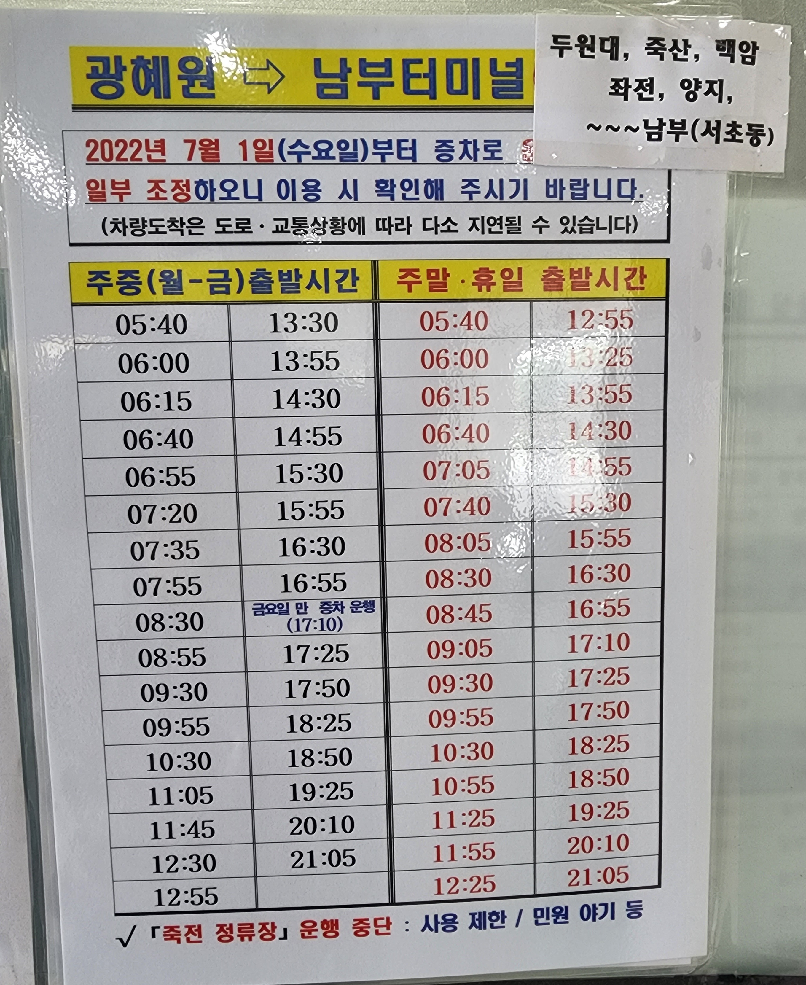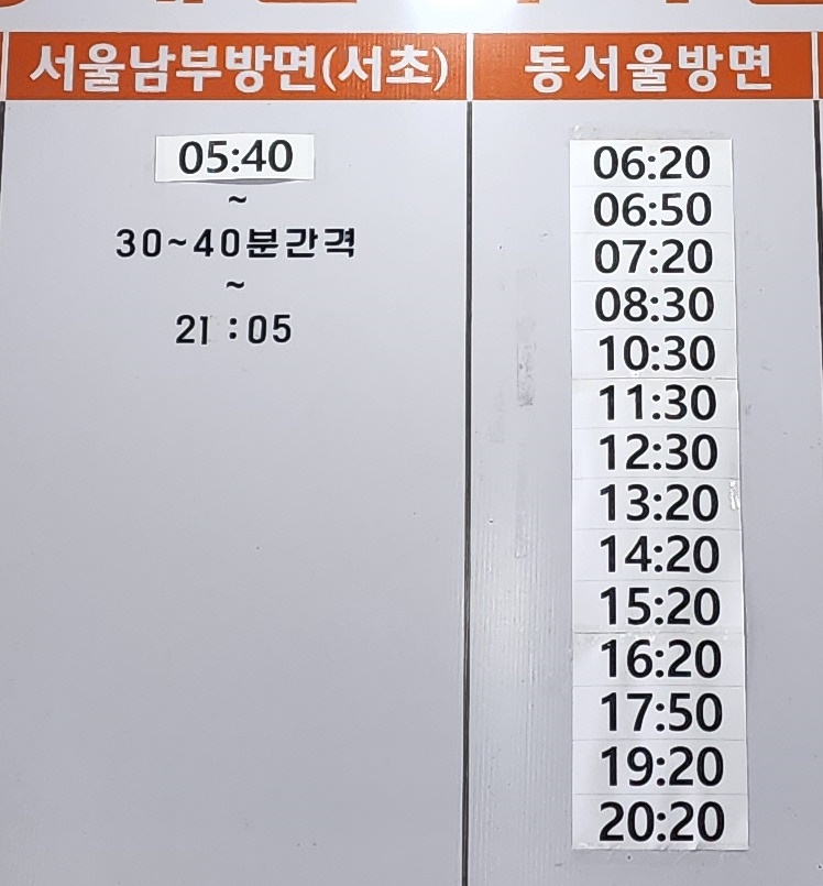 광혜원 출발 서울남부 서초, 동서울 방면.