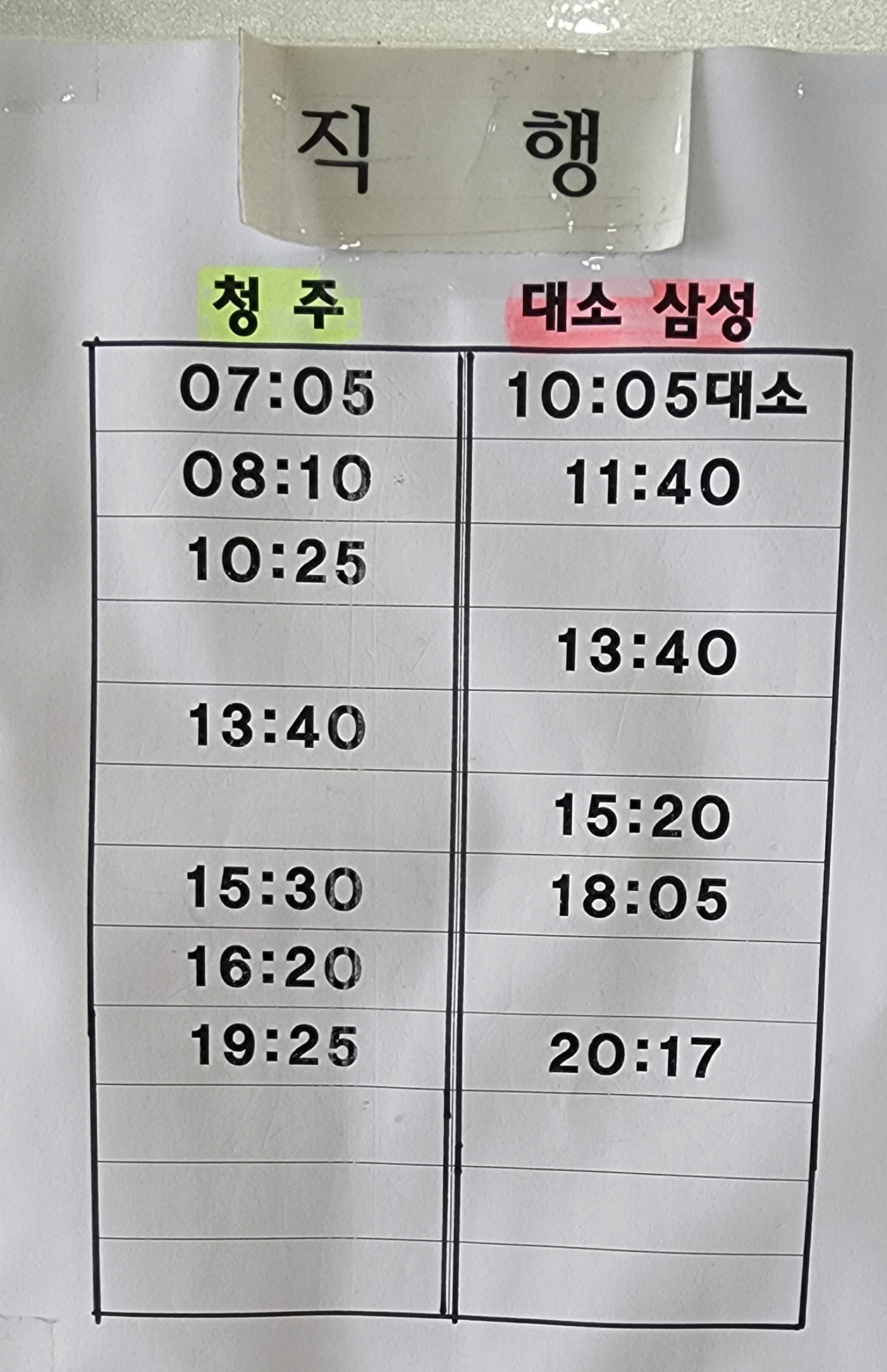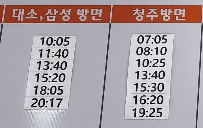 광혜원 출발, 대소, 삼성, 청주 방면.