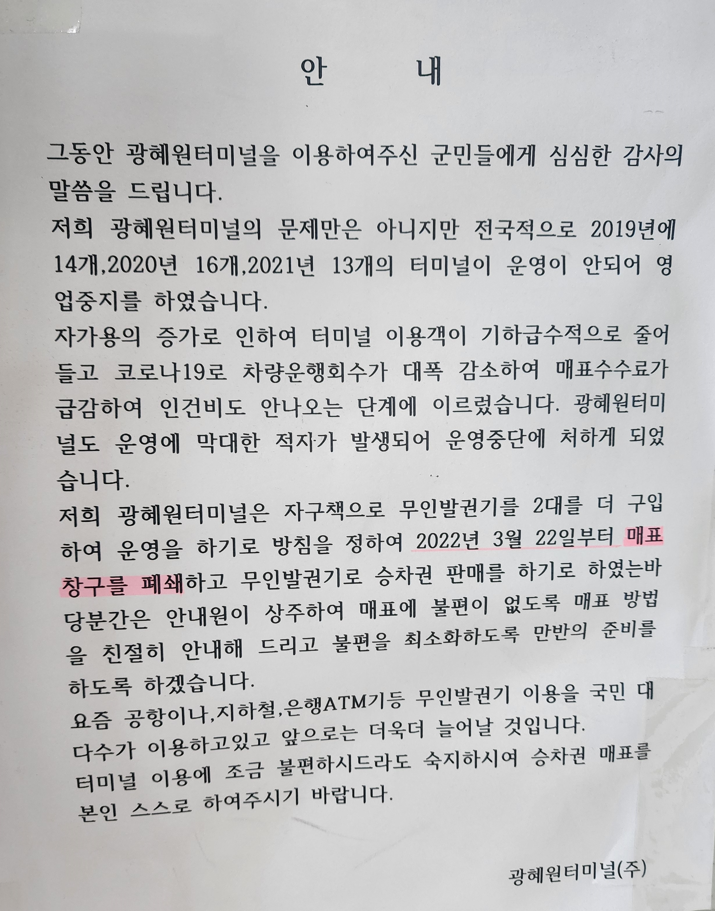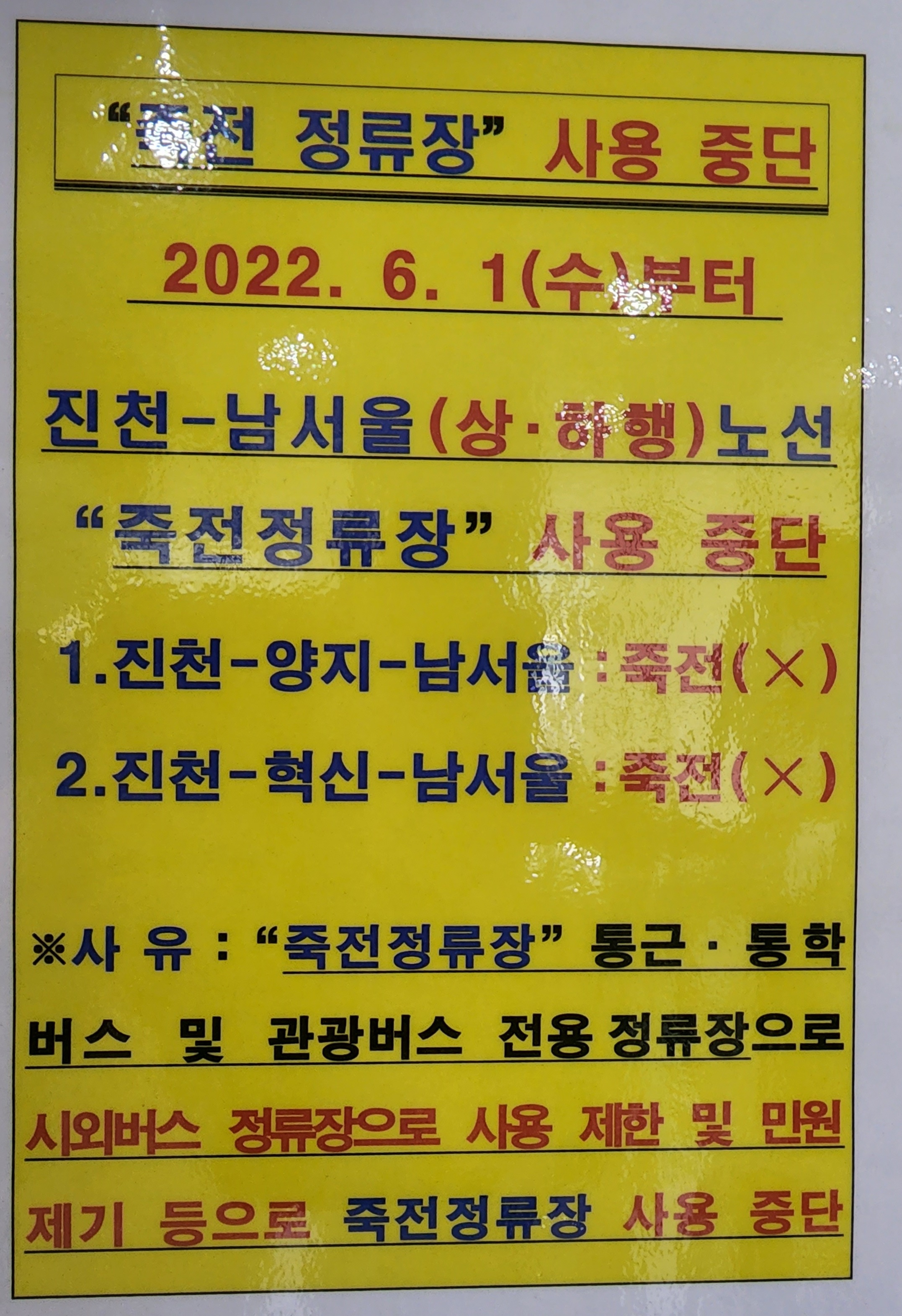 죽전 정류장 사용 중단 알림