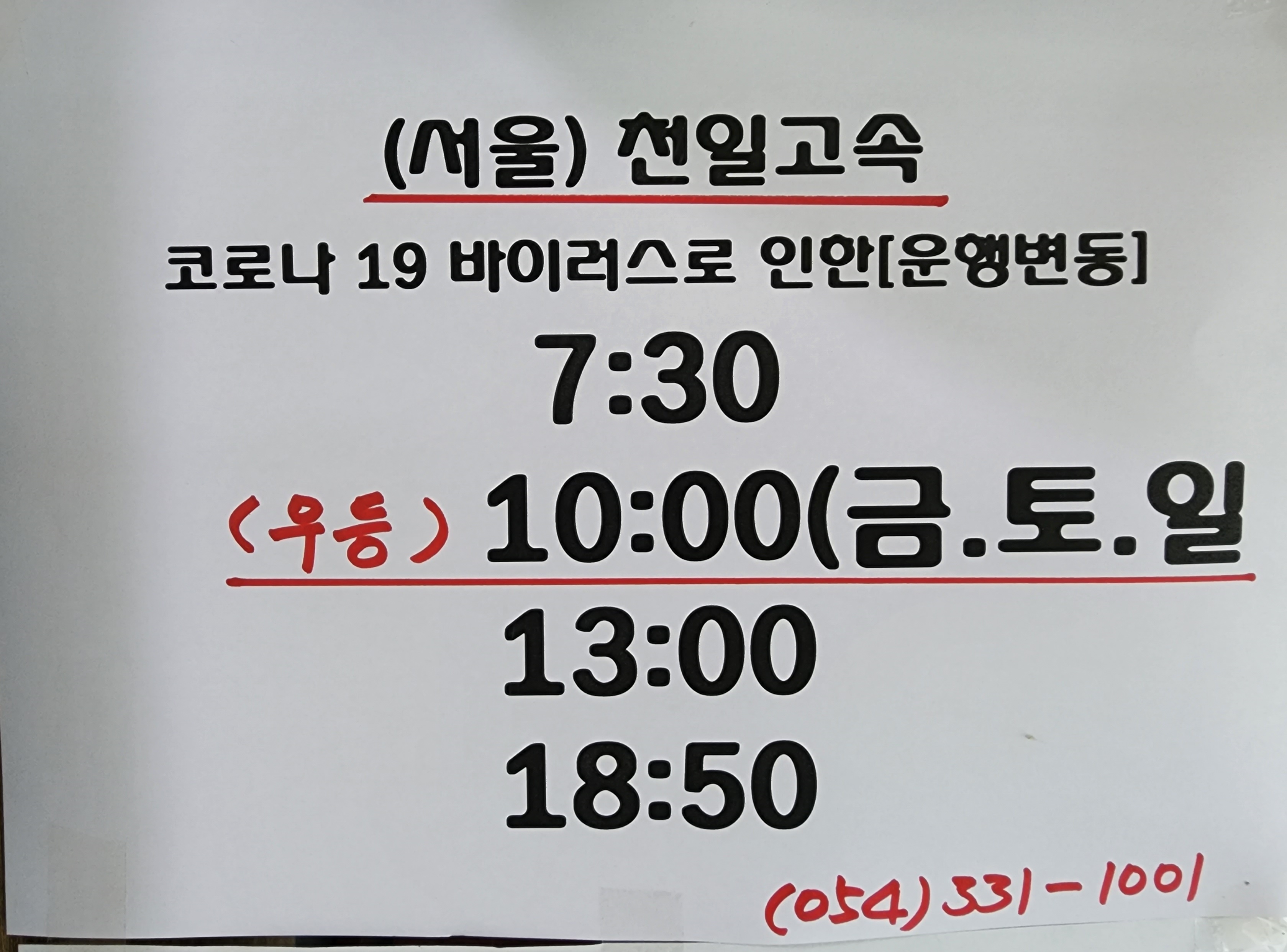 영천 출발 서울 천일고속 시간표