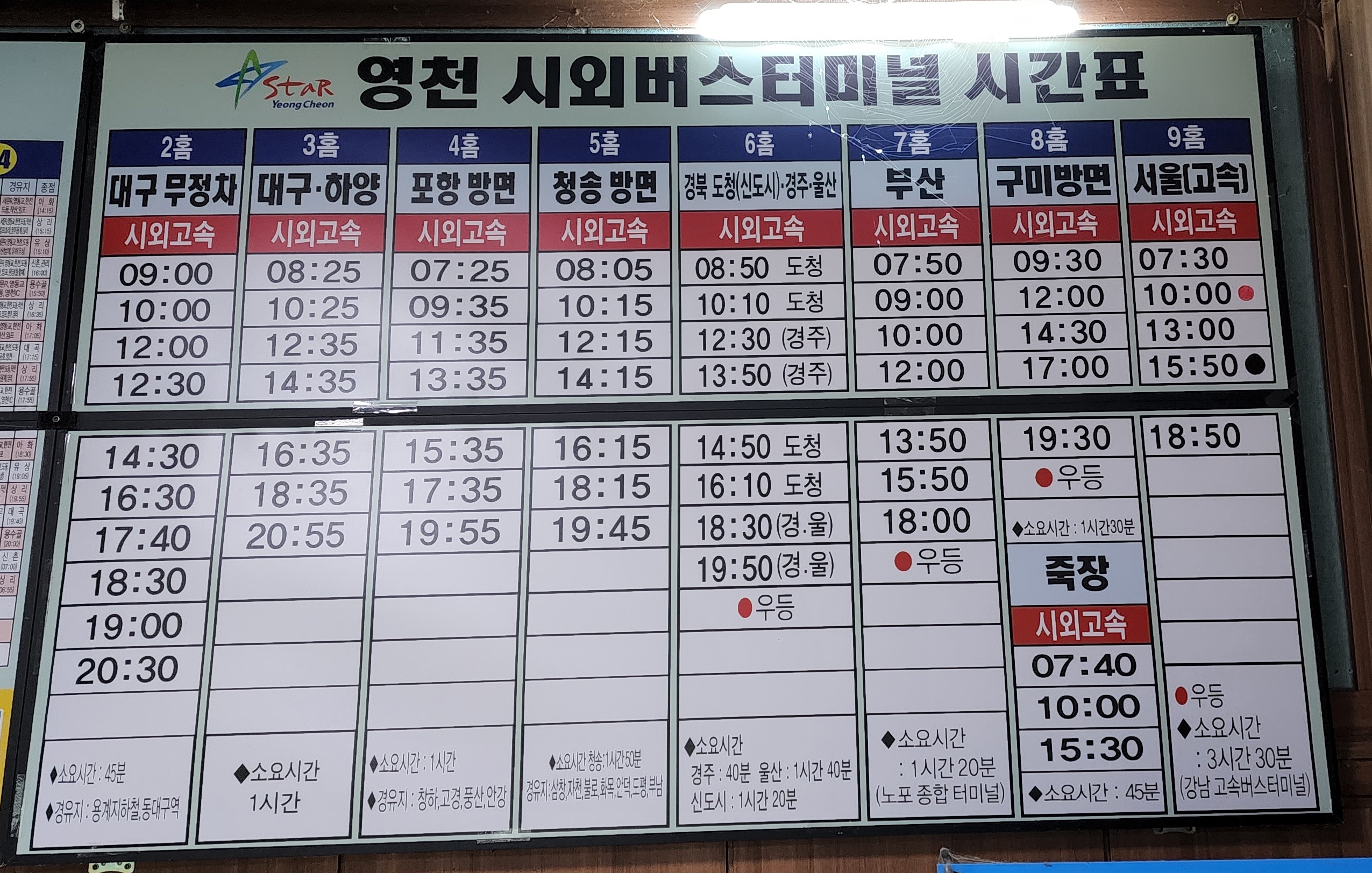 영천시외버스터미널 시간표