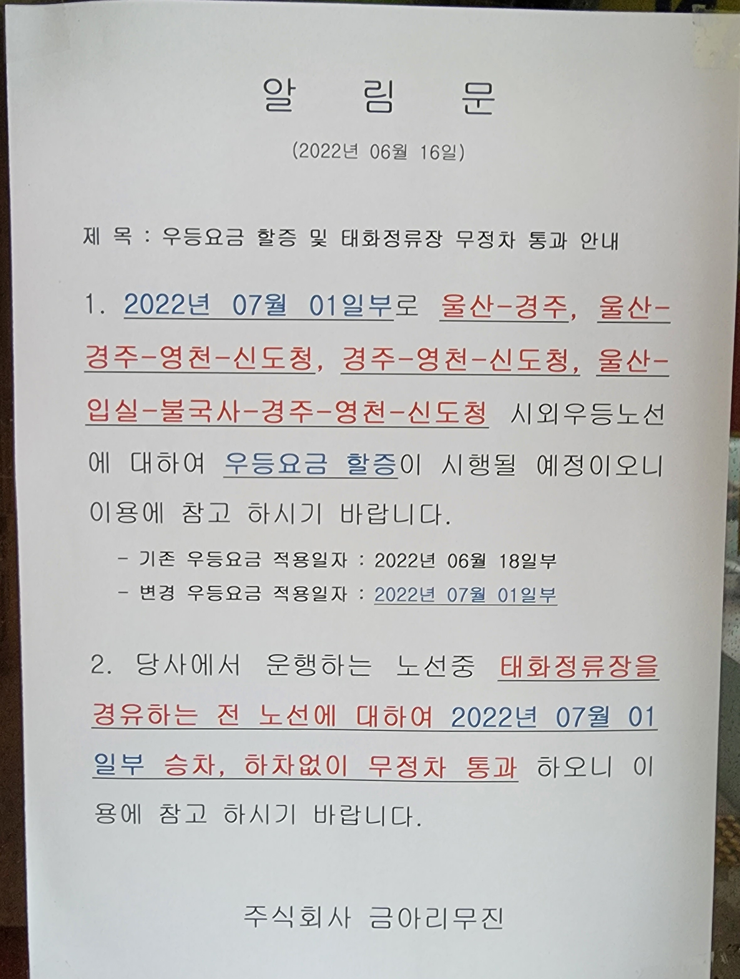 2022년 6월 16일 알림문