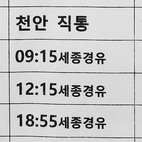 서천 출발 세종 경유, 천안 직통