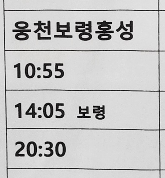 서천 출발 웅천, 보령, 홍성 방면.