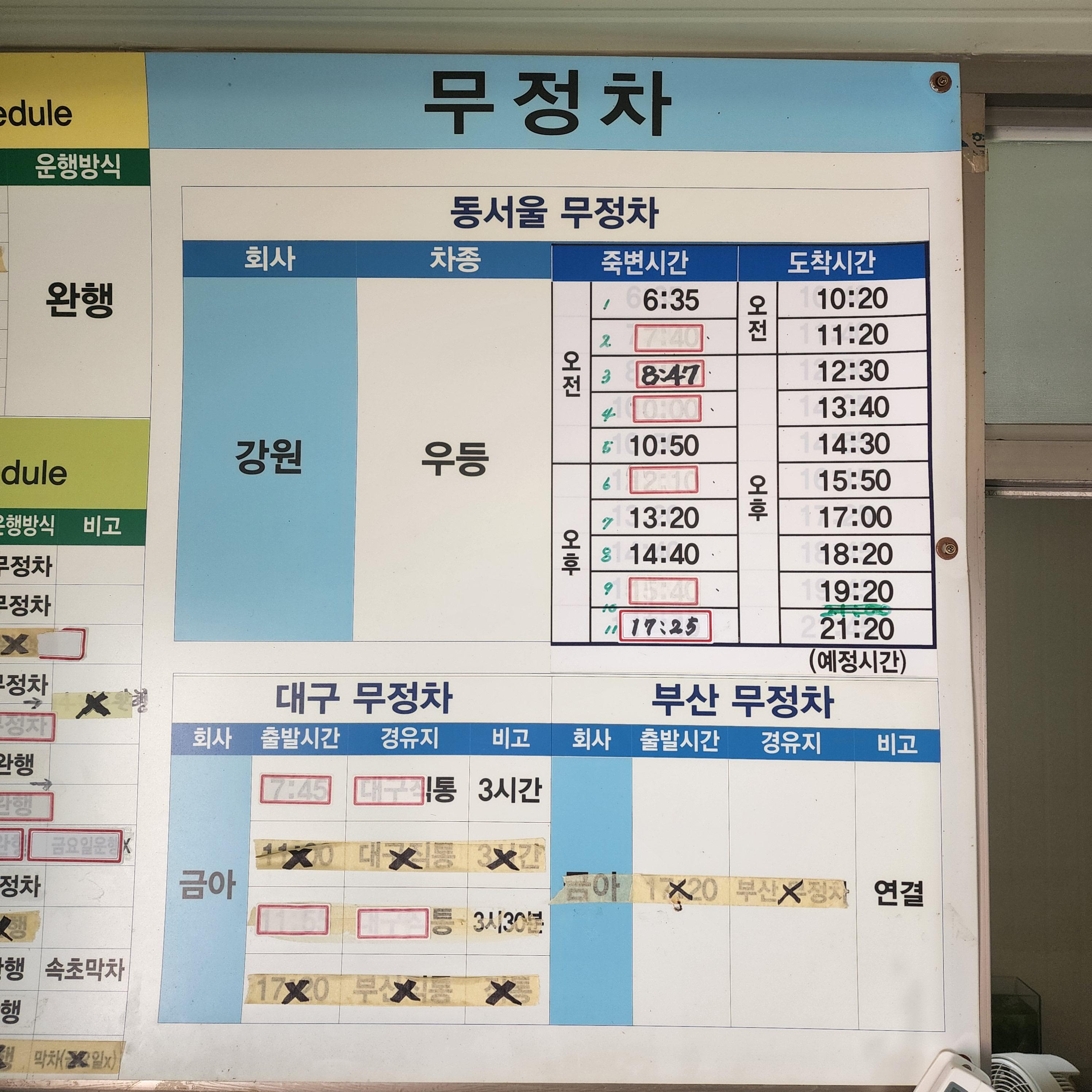 죽변 출발 동서울 방면.