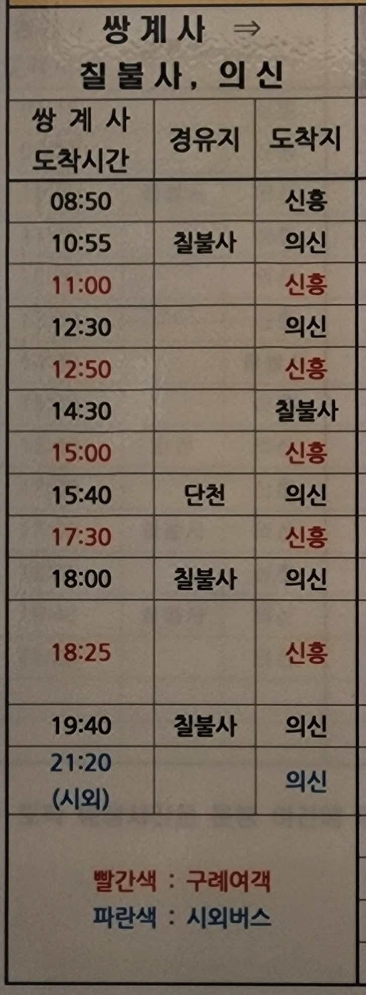 쌍계사 출발 칠불사, 의신, 신흥 방면.