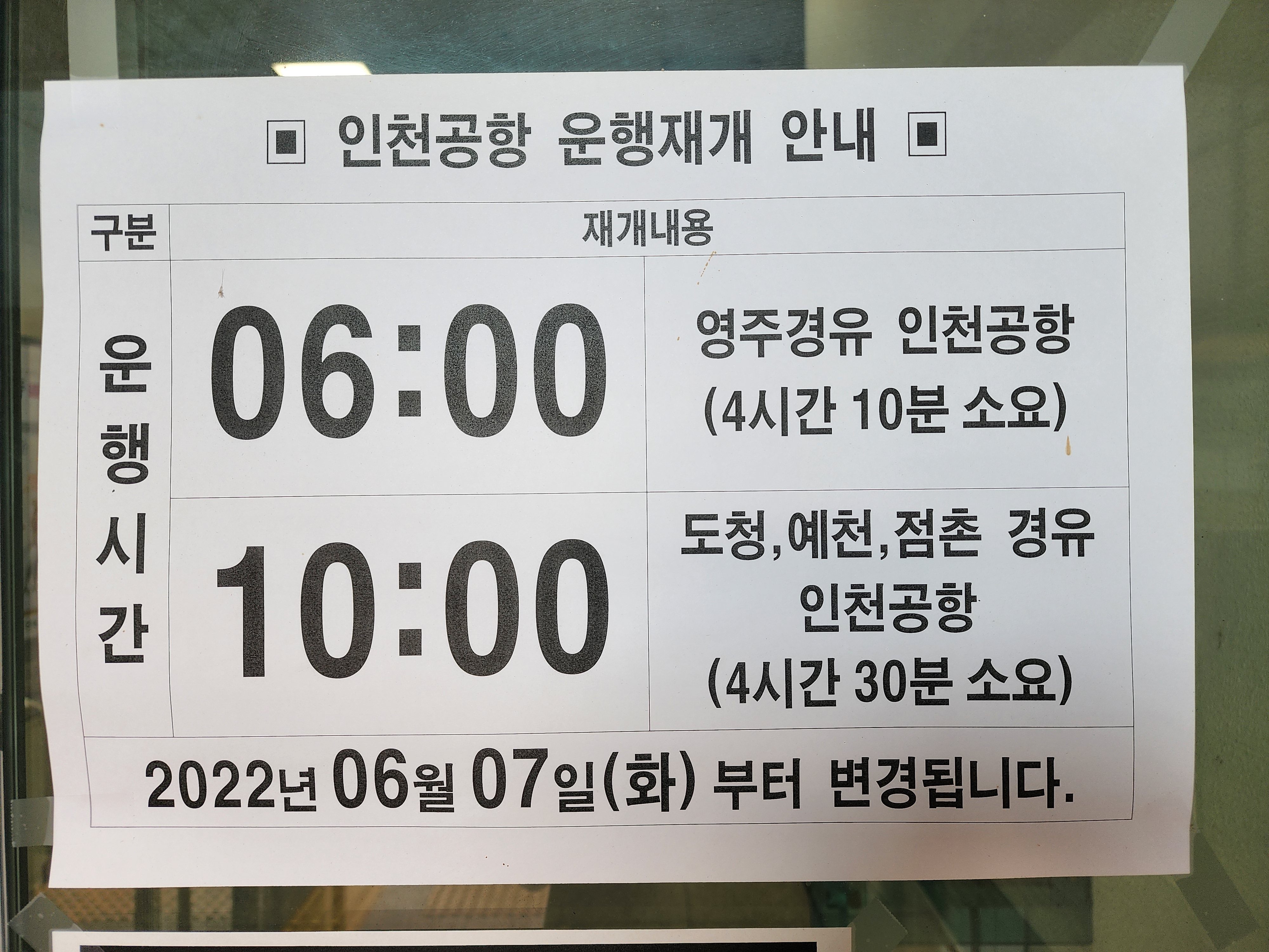 안동 출발 인천공항. 출발 재개