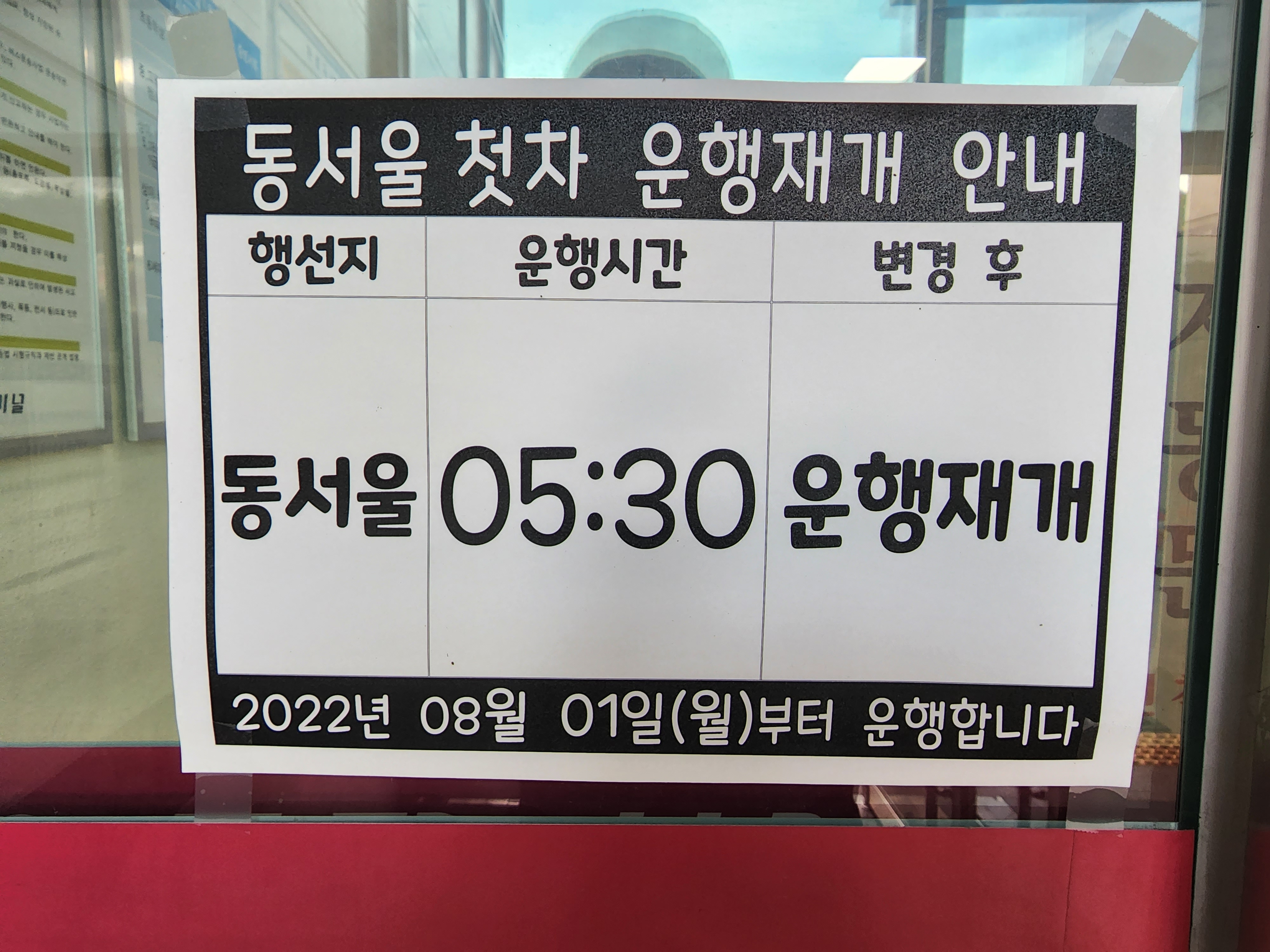 안동 출발 동서울. 첫차 운행재개