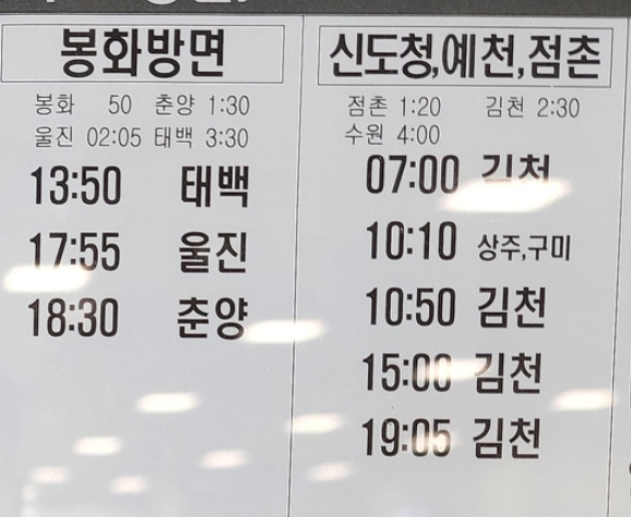 안동시외버스터미널 시간표