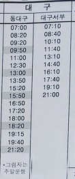 울산 출발 경주, 영천, 영대, 경산, 안동, 영주, 제천 방면.