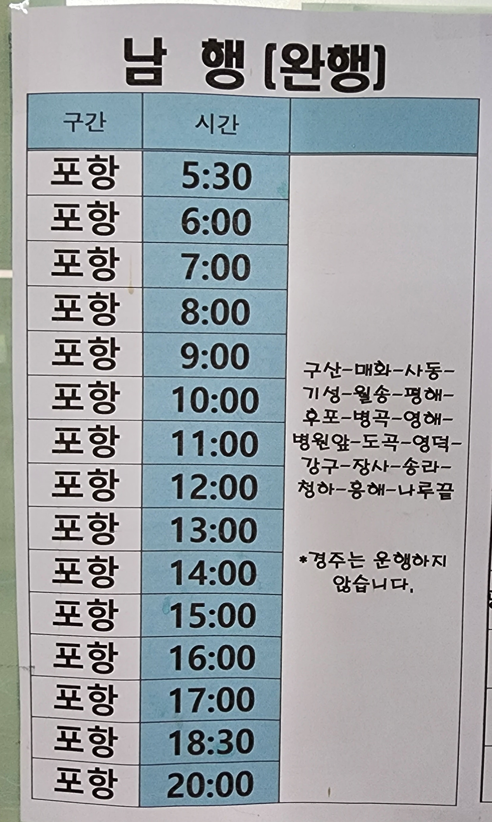 울진 출발 포항 방면.