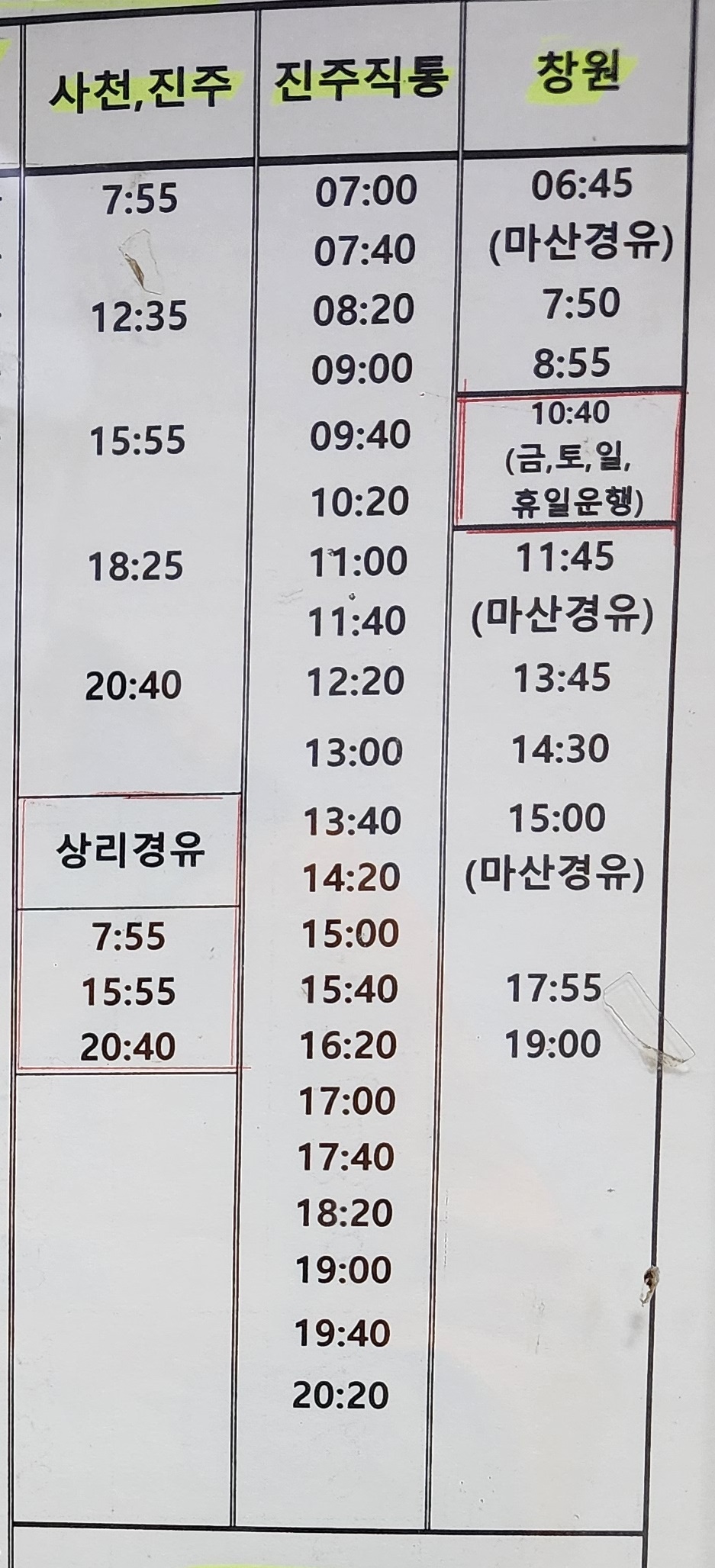 고성 출발 사천, 진주, 마산, 창원 방면.
