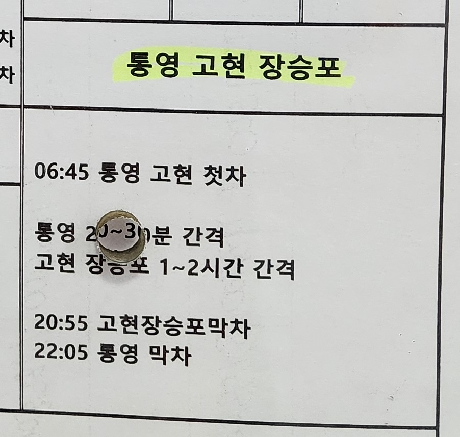 고성 출발 통영, 고현, 장승포 방면.
