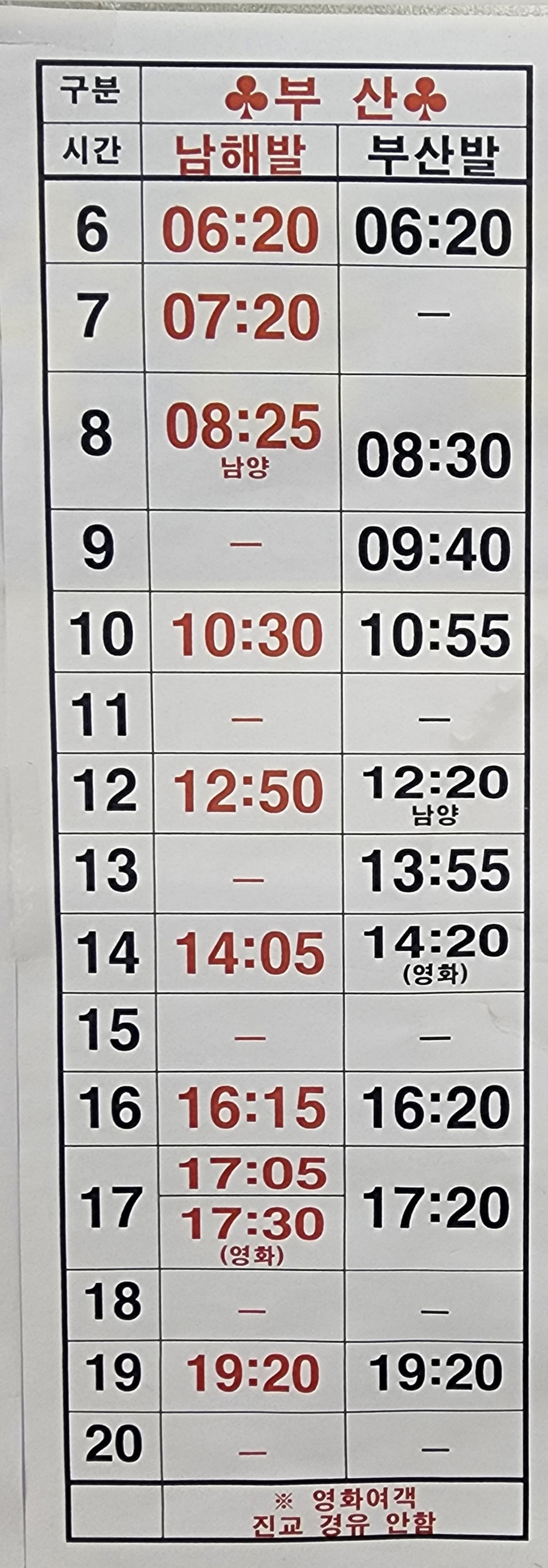남해 출발 부산 방면.