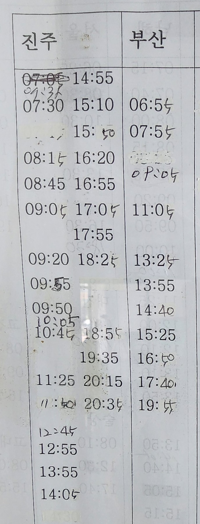 진교 출발 곤양, 마산, 창원, 하동 방면.