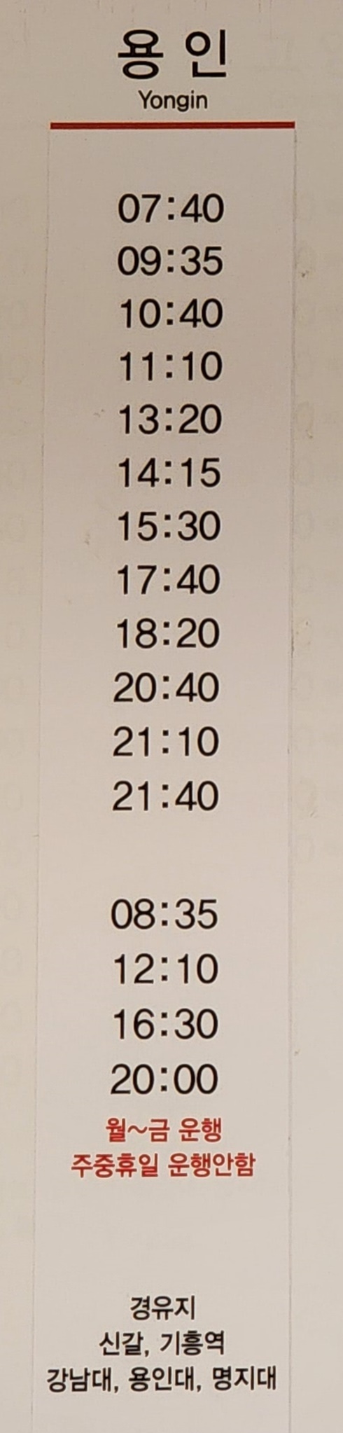 천안 출발 용인신갈, 기흥역, 강남대, 용인대, 명지대 방면.