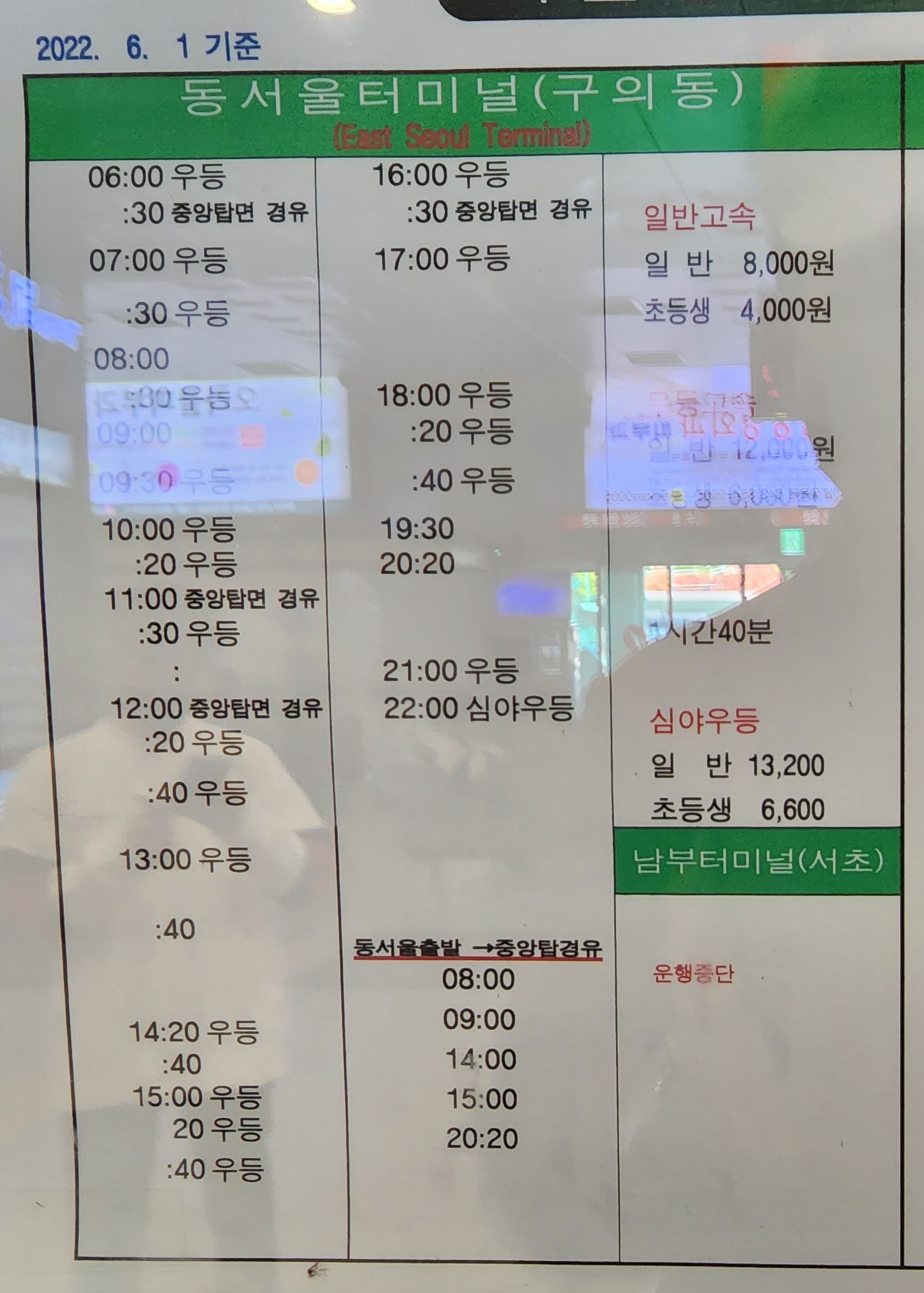 충주 출발 동서울 방면.
